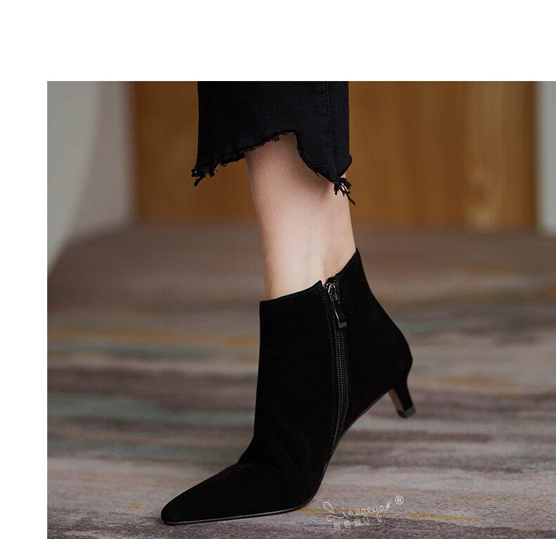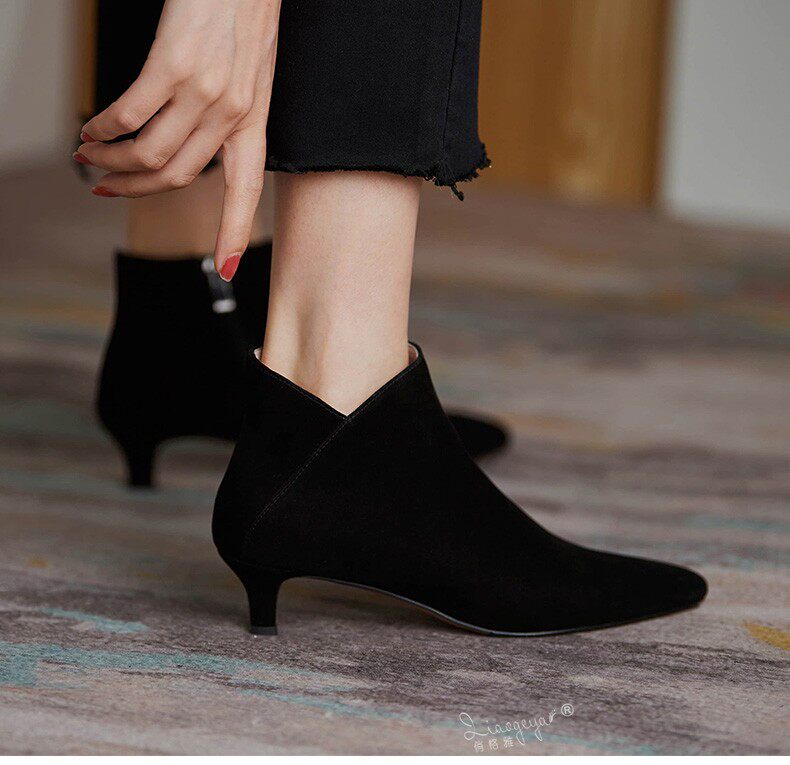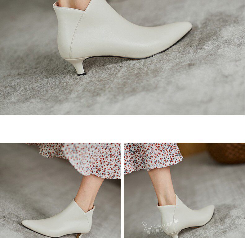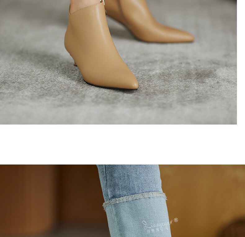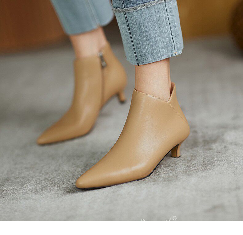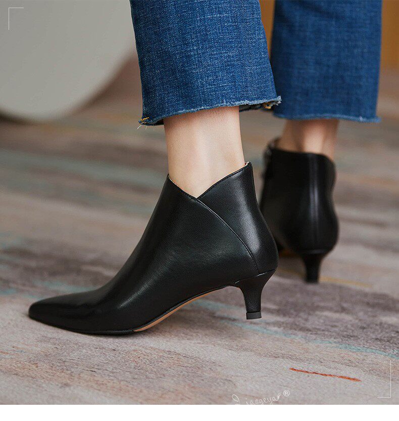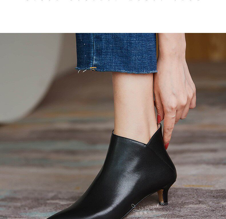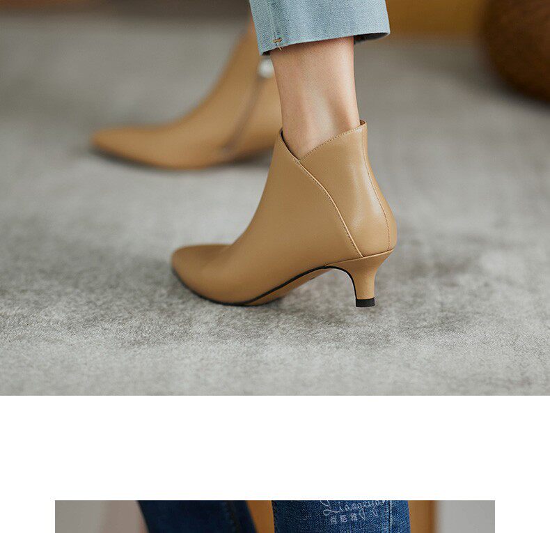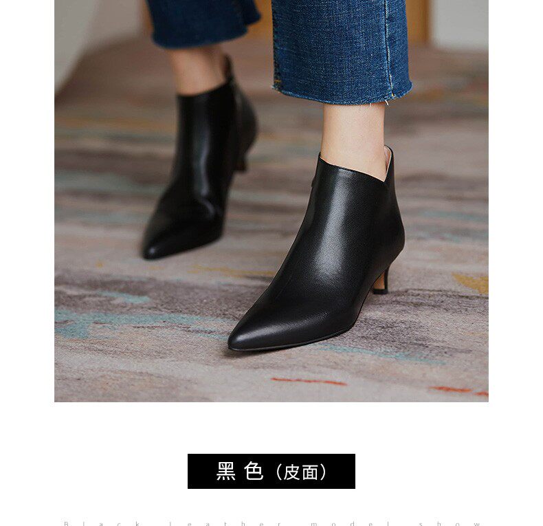 Демисезонные короткие сапоги, туфли на высоком каблуке, ботильоны, из натуральной кожи