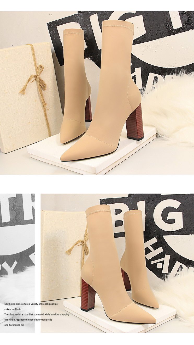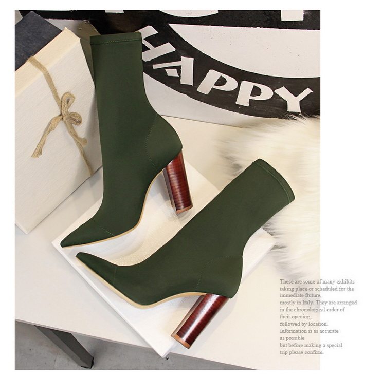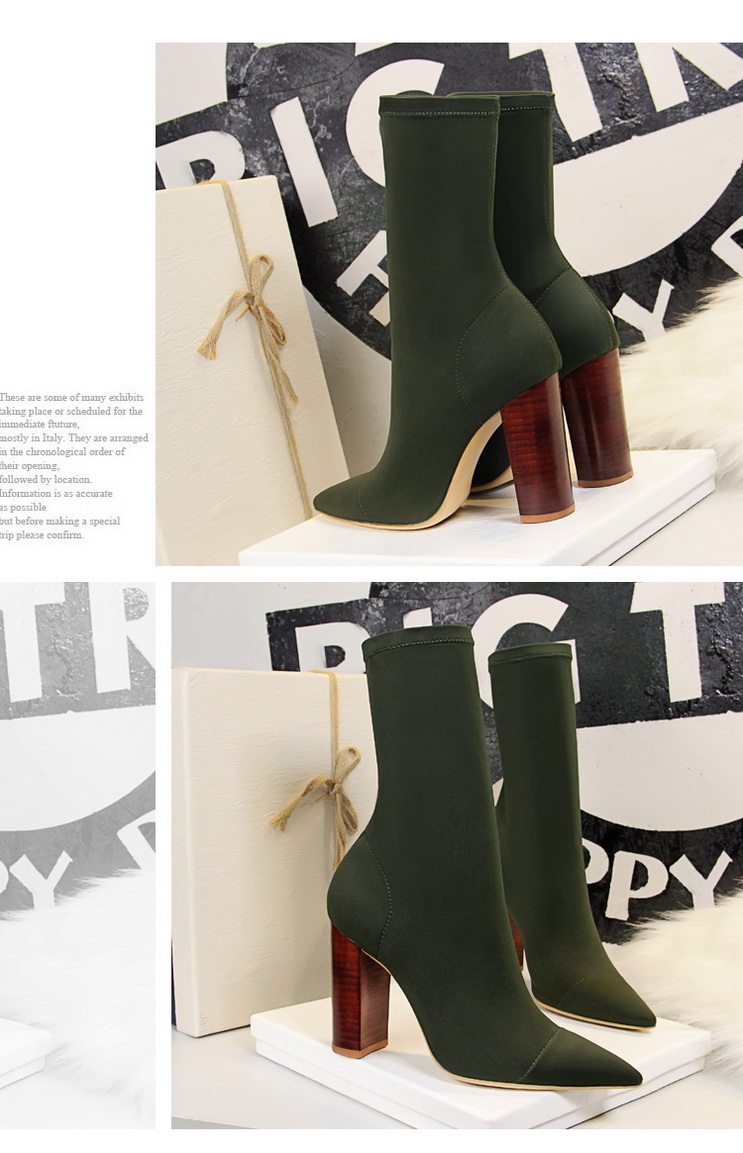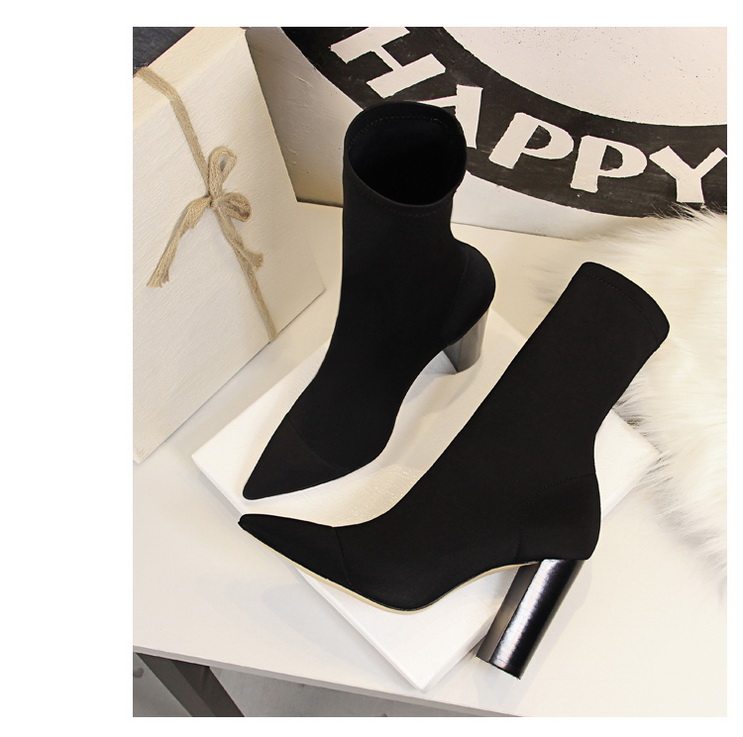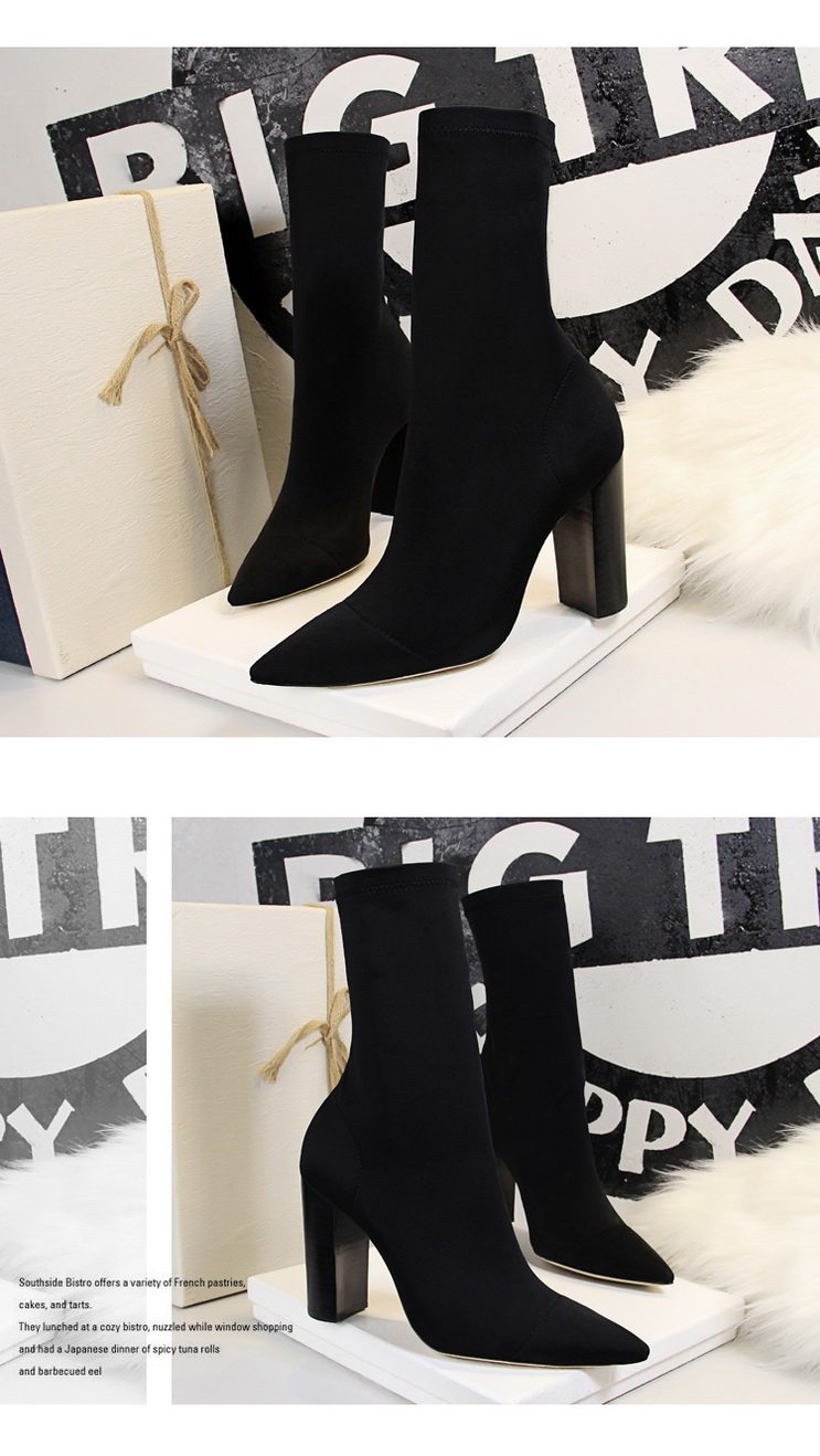 Черные высокие эластичные сапоги на высоком каблуке с заостренным носом, большой размер, 10см, средней длины, коллекция 2023