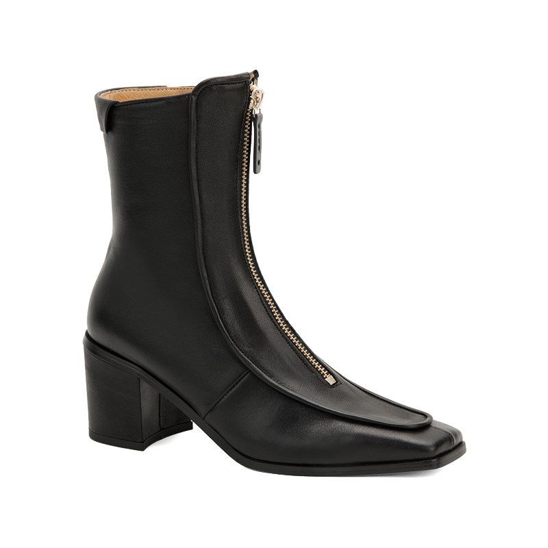 Черные кожаные дизайнерские высокие ботильоны с молнией для отдыха, материал