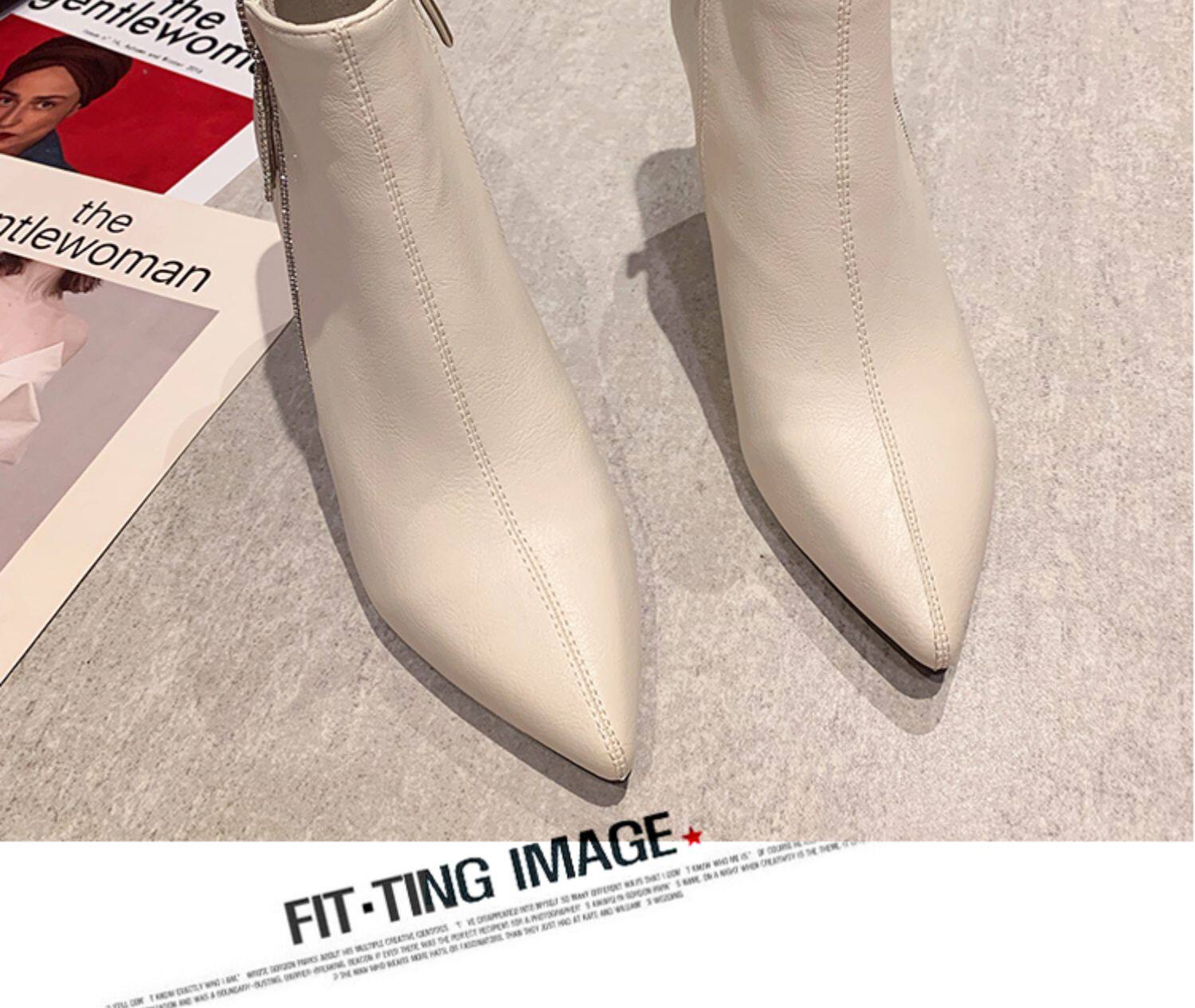 Martens, демисезонные высокие короткие сапоги, белые флисовые ботинки с заостренным носом, ботильоны, популярно в интернете