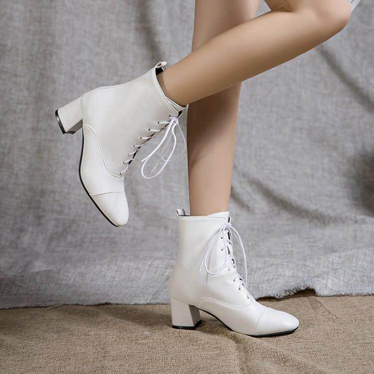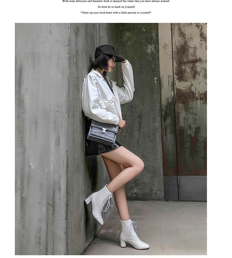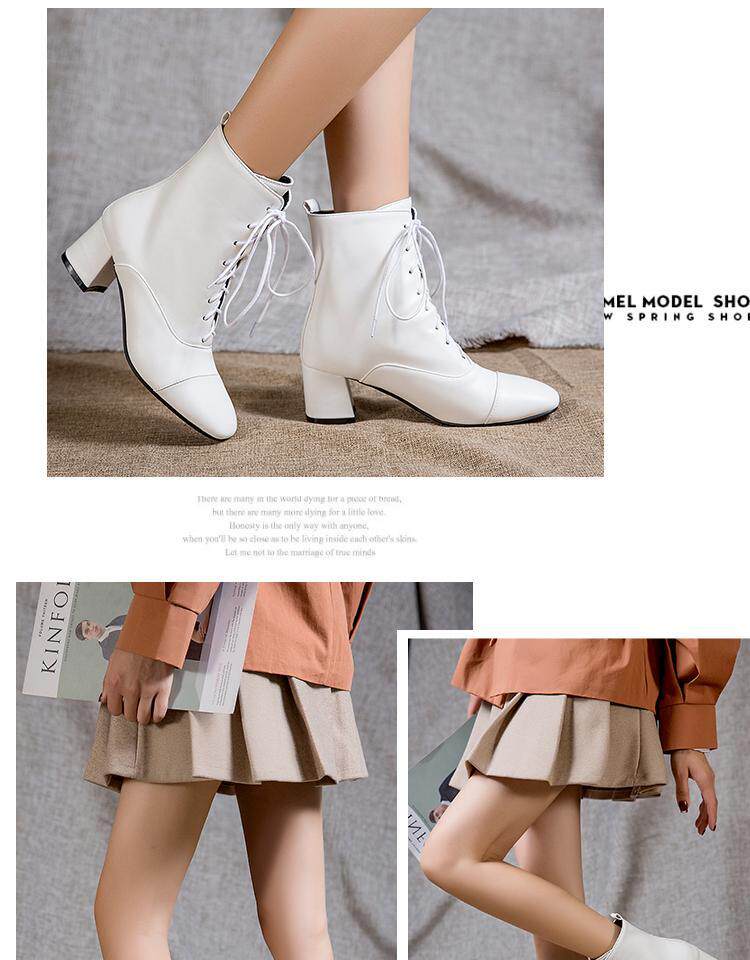 Martens, демисезонные белые ботинки, ремень, тонкие короткие сапоги, простой и элегантный дизайн