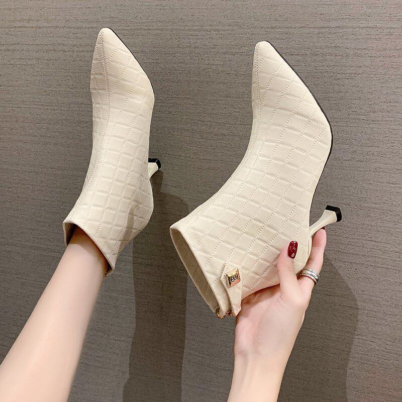 Martens, универсальные сексуальные демисезонные короткие сапоги с молнией с заостренным носом на высоком каблуке, 2020 года