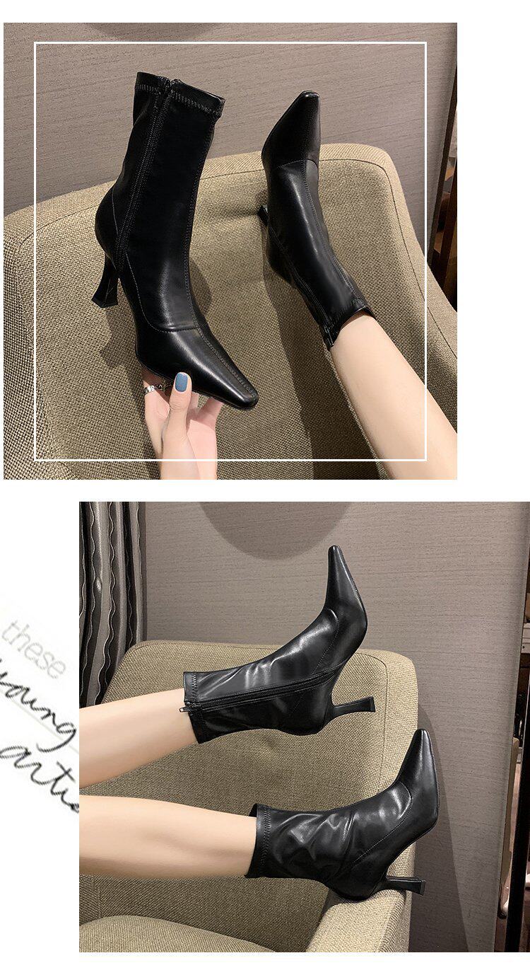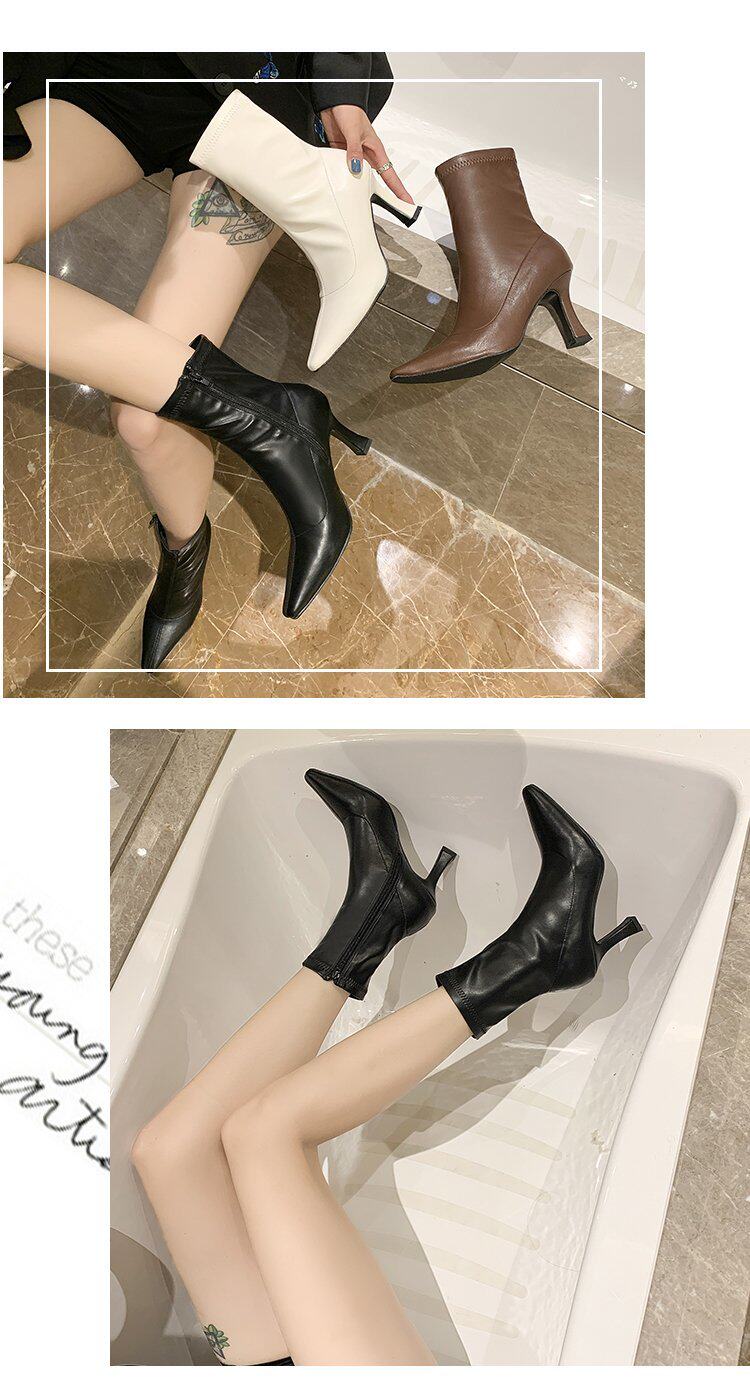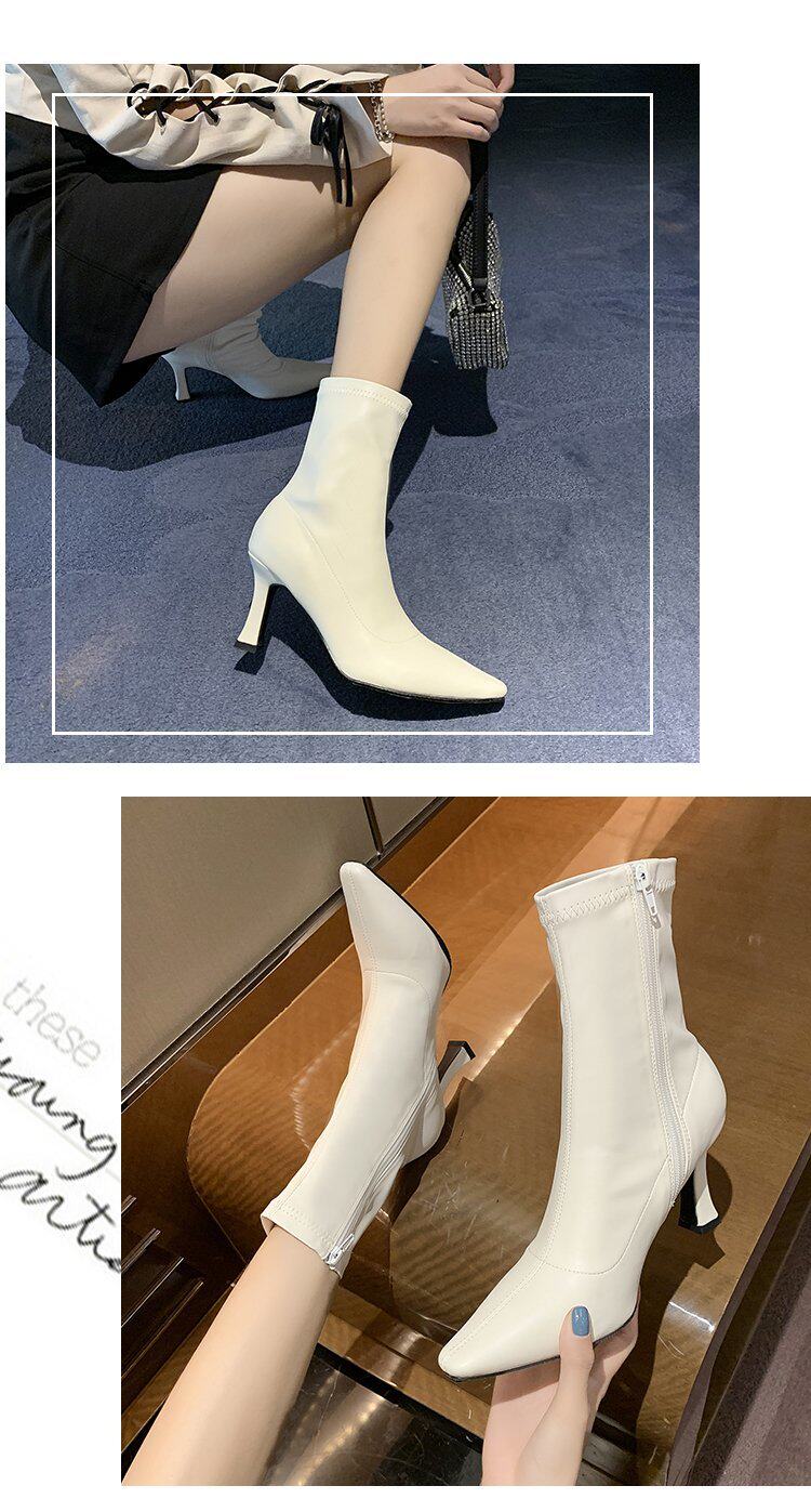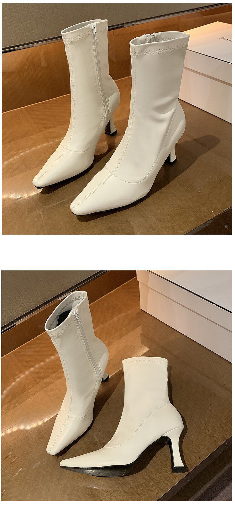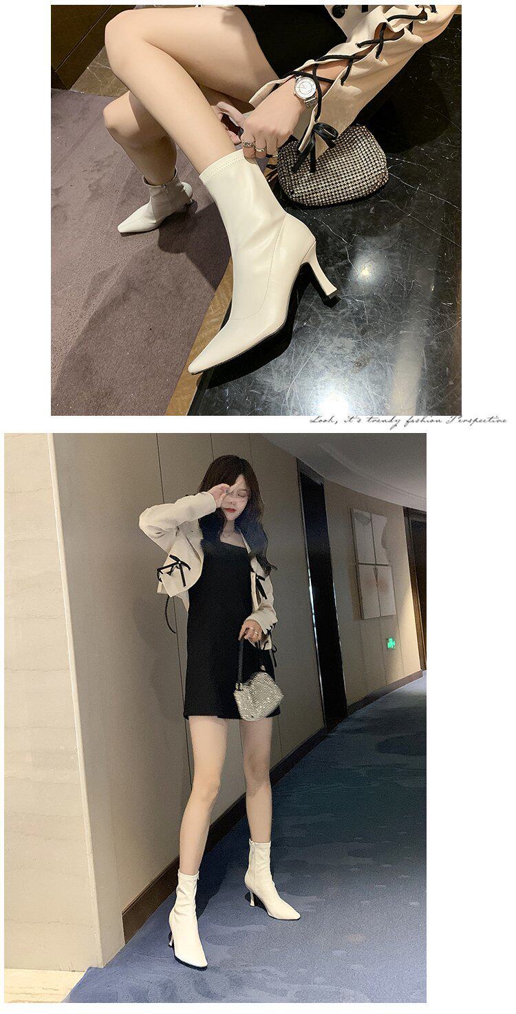 Martens, белые флисовые короткие сапоги, демисезонные ботинки с заостренным носом, обувь на высоком каблуке, тренд сезона, средней длины