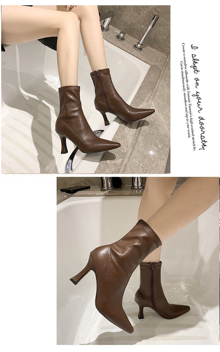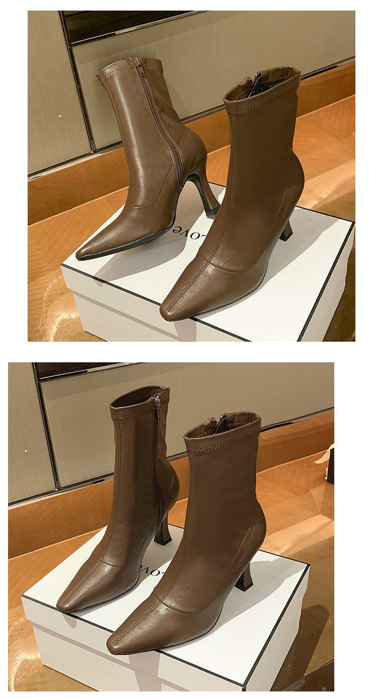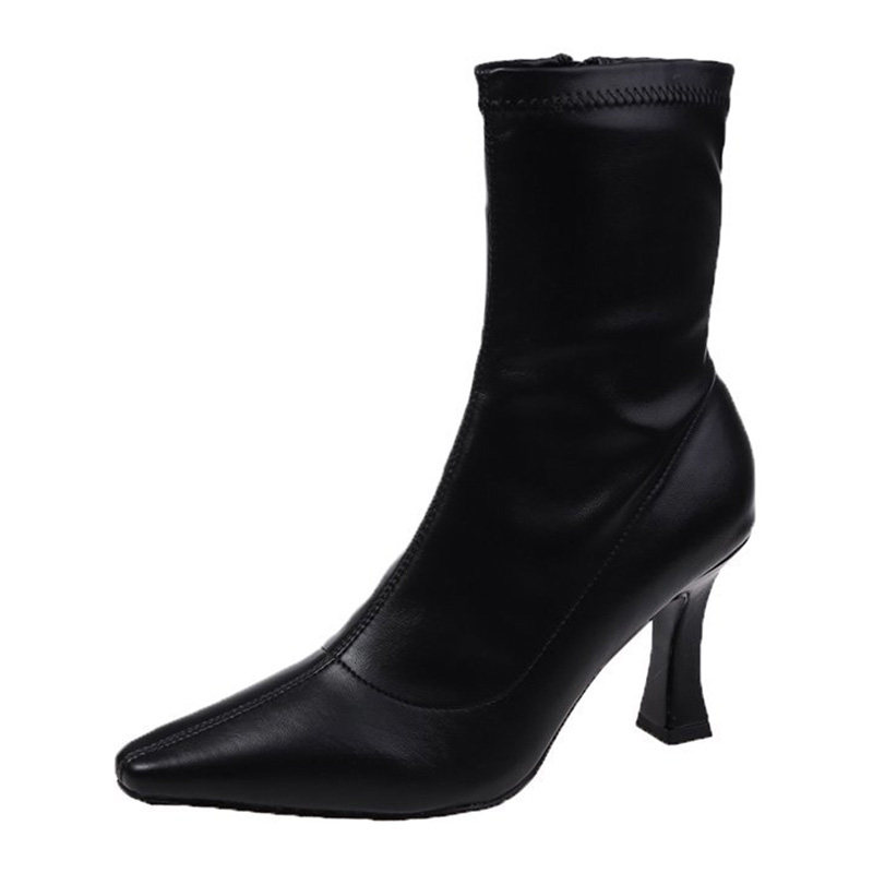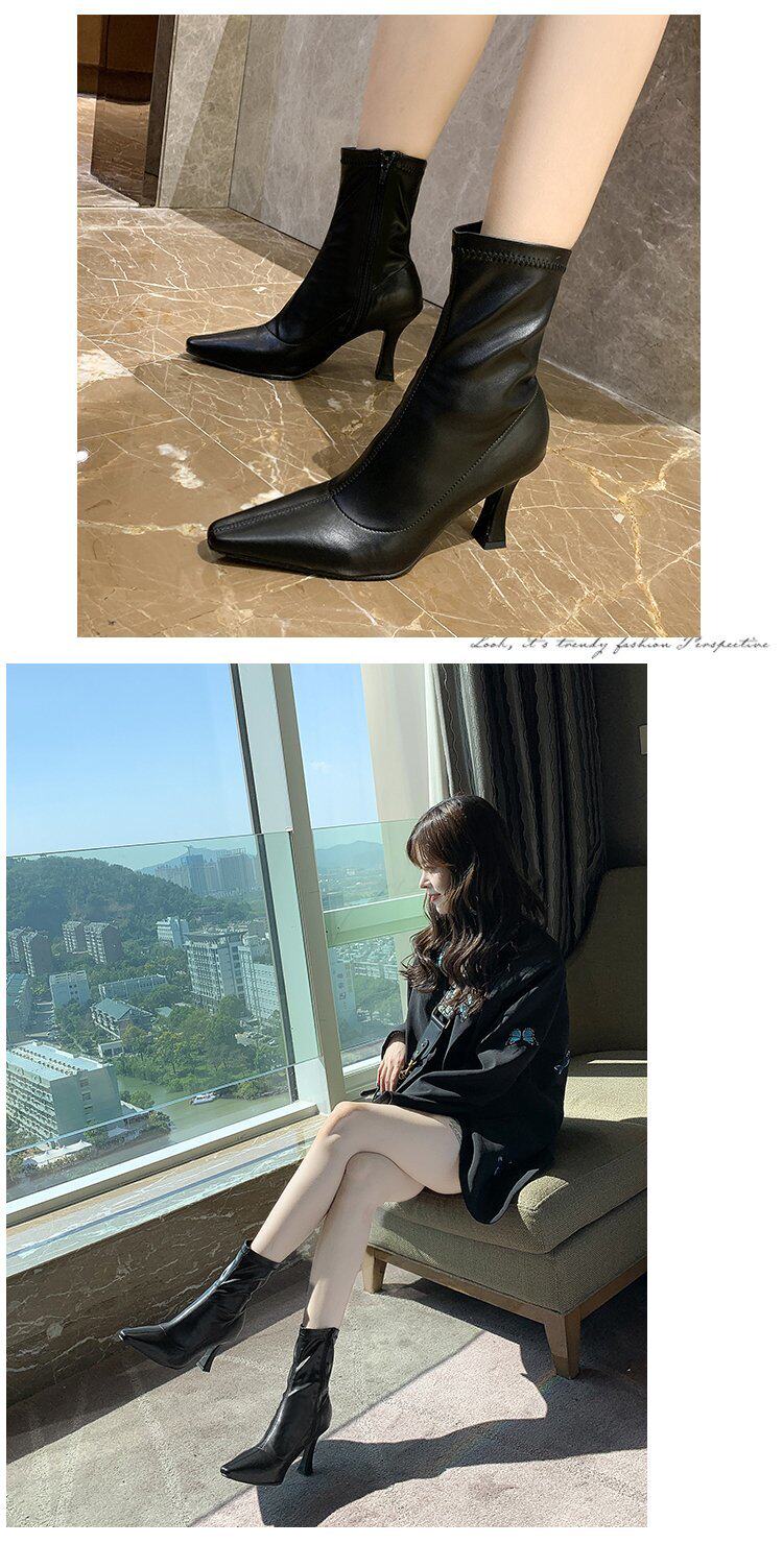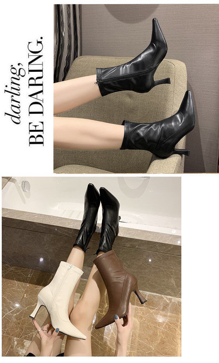 Martens, белые флисовые короткие сапоги, демисезонные ботинки с заостренным носом, обувь на высоком каблуке, тренд сезона, средней длины