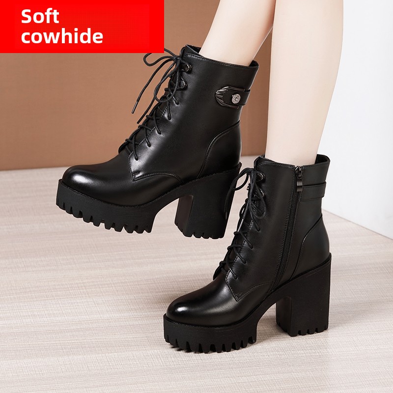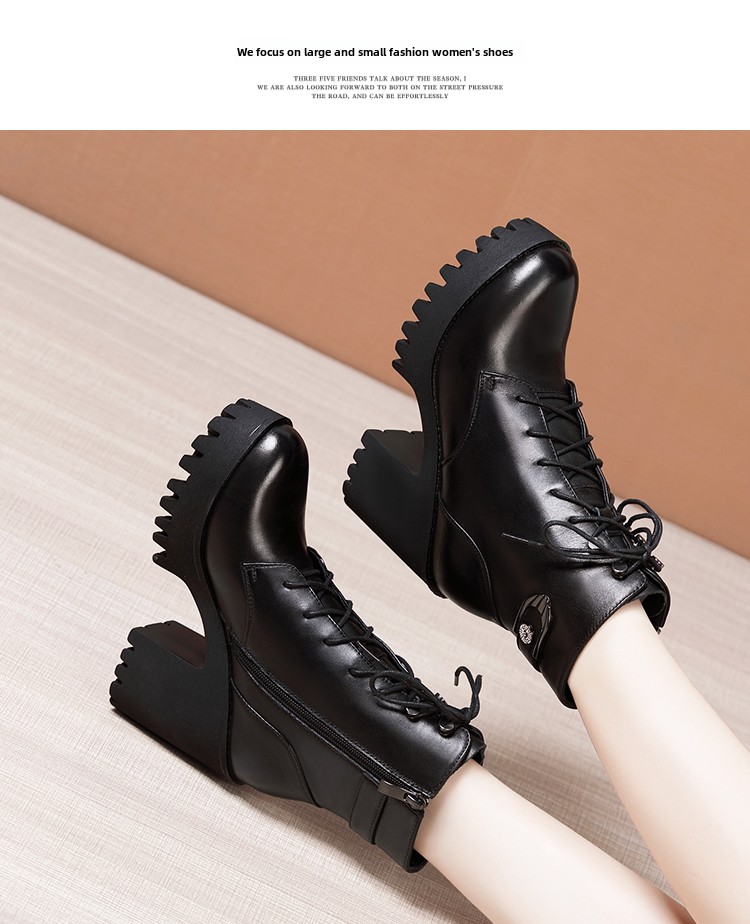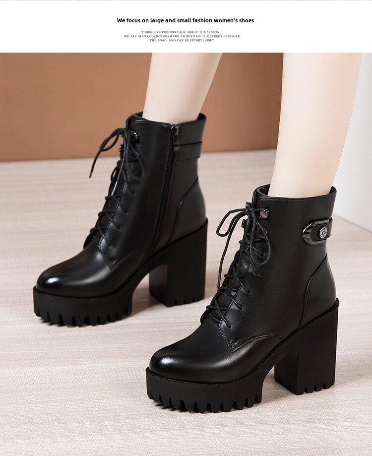 Женские сапоги из натуральной кожи в сетку. Новинка 2025 года. Туфли на высоком каблуке на толстой подошве. Многоцелевые короткие сапоги до середины икры большого размера на толстом каблуке. Одинарные сапоги большого размера.
