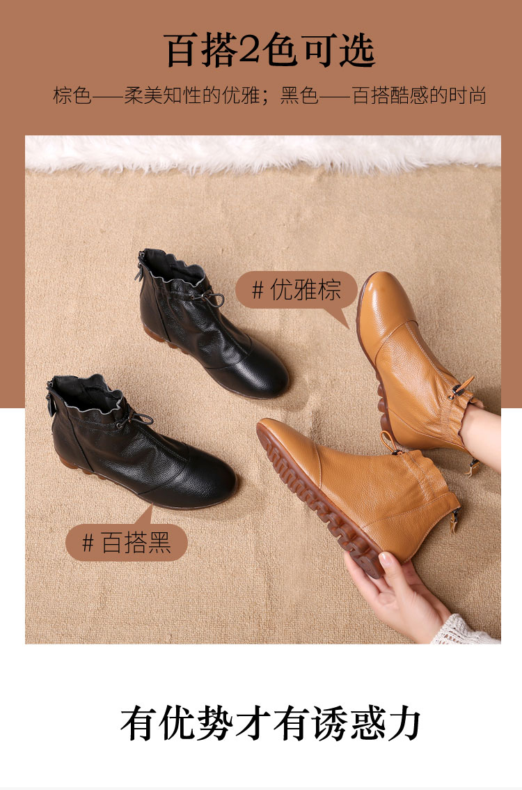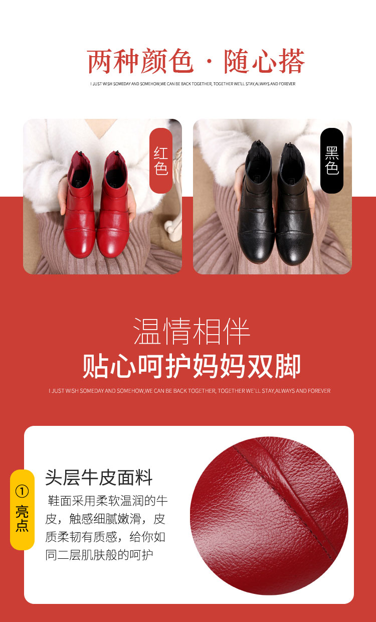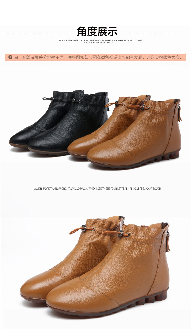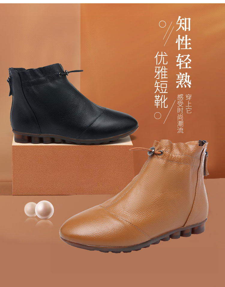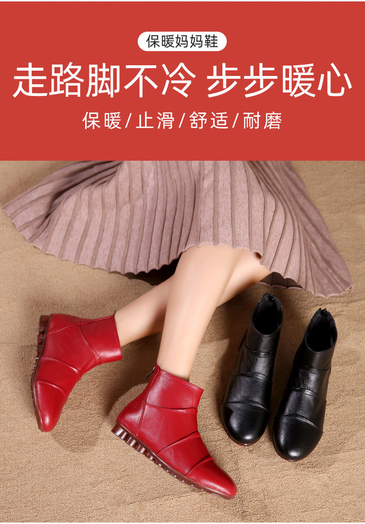Демисезонные ботинки, туфли, флисовые короткие сапоги для матери, из натуральной кожи, мягкая подошва, большой размер, для среднего возраста