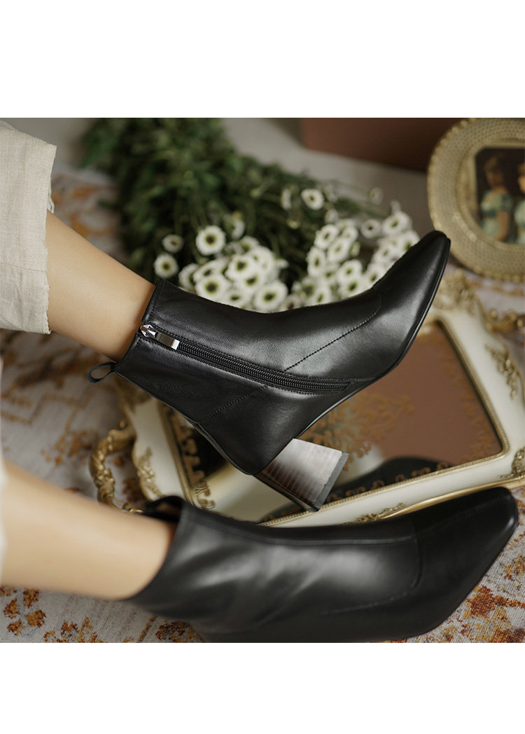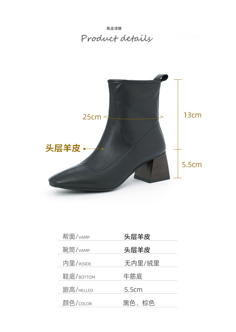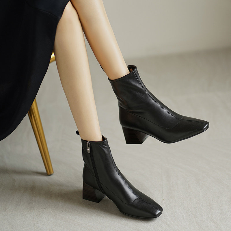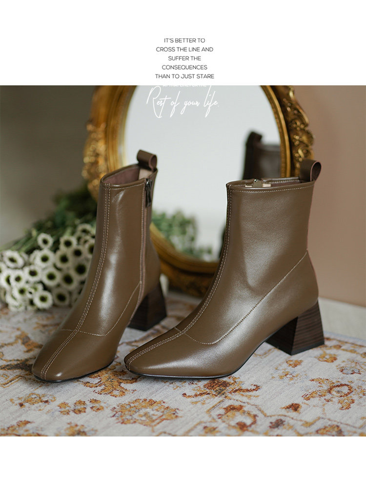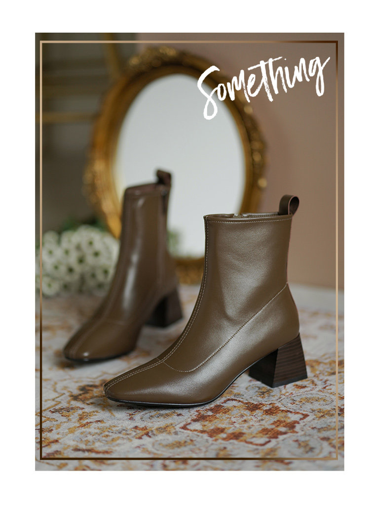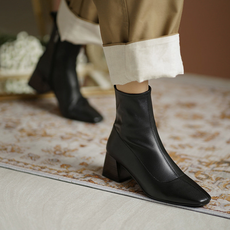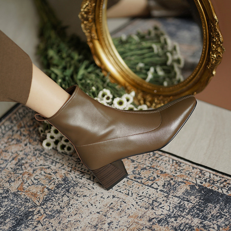Демисезонные коричневые короткие сапоги, черные ботинки, французский стиль