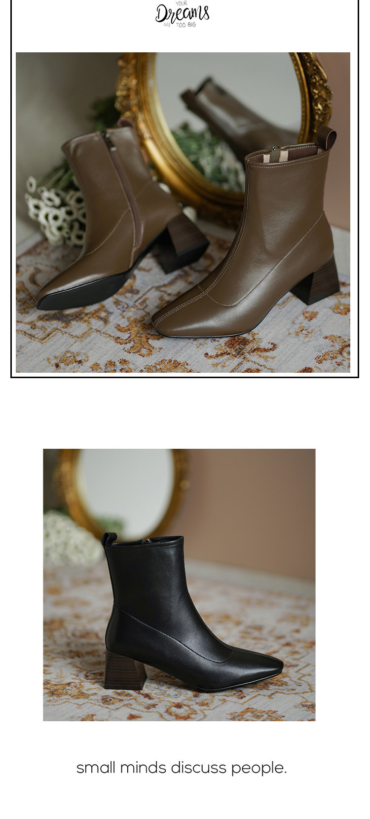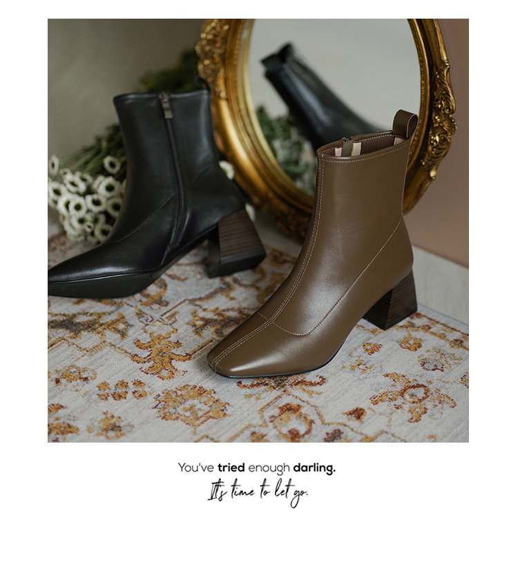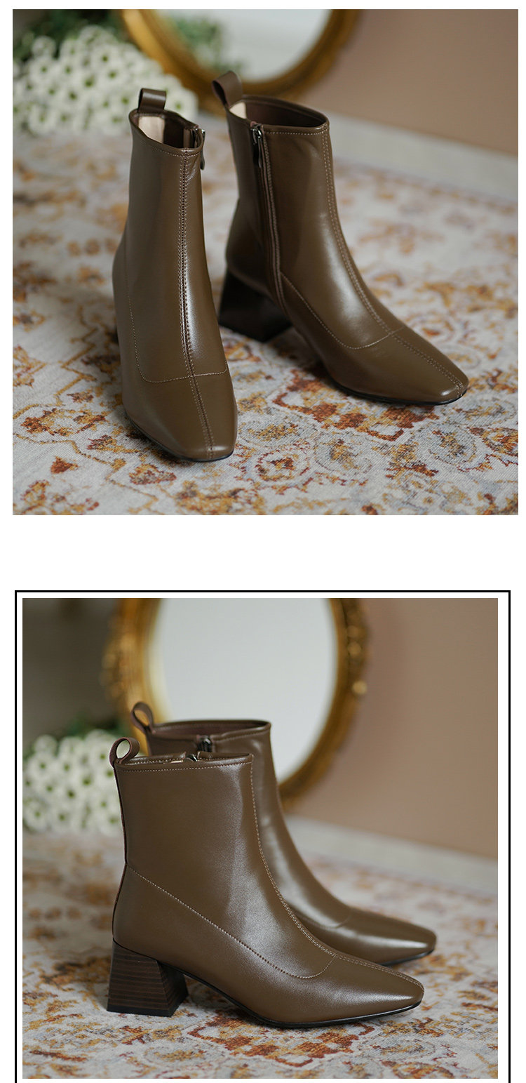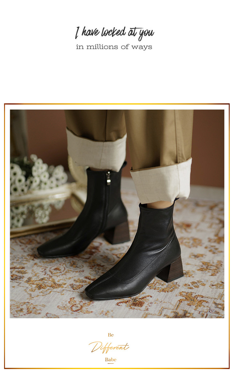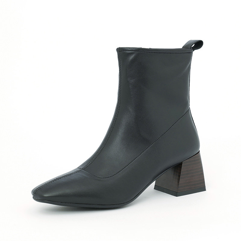 Демисезонные коричневые короткие сапоги, черные ботинки, французский стиль
