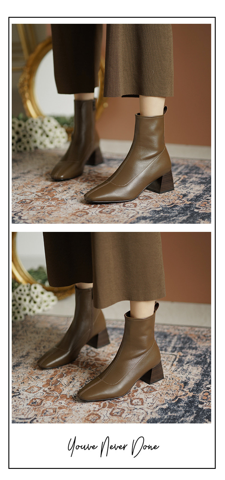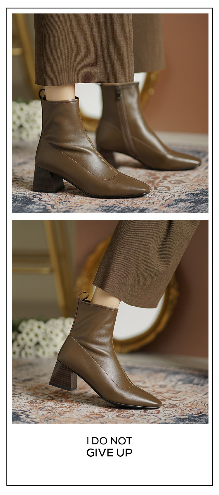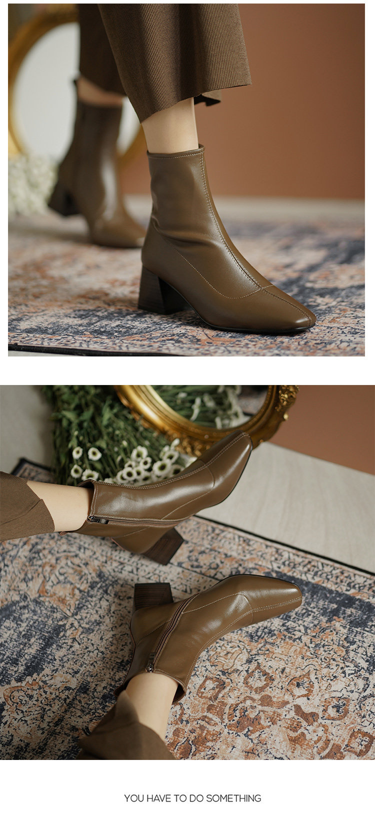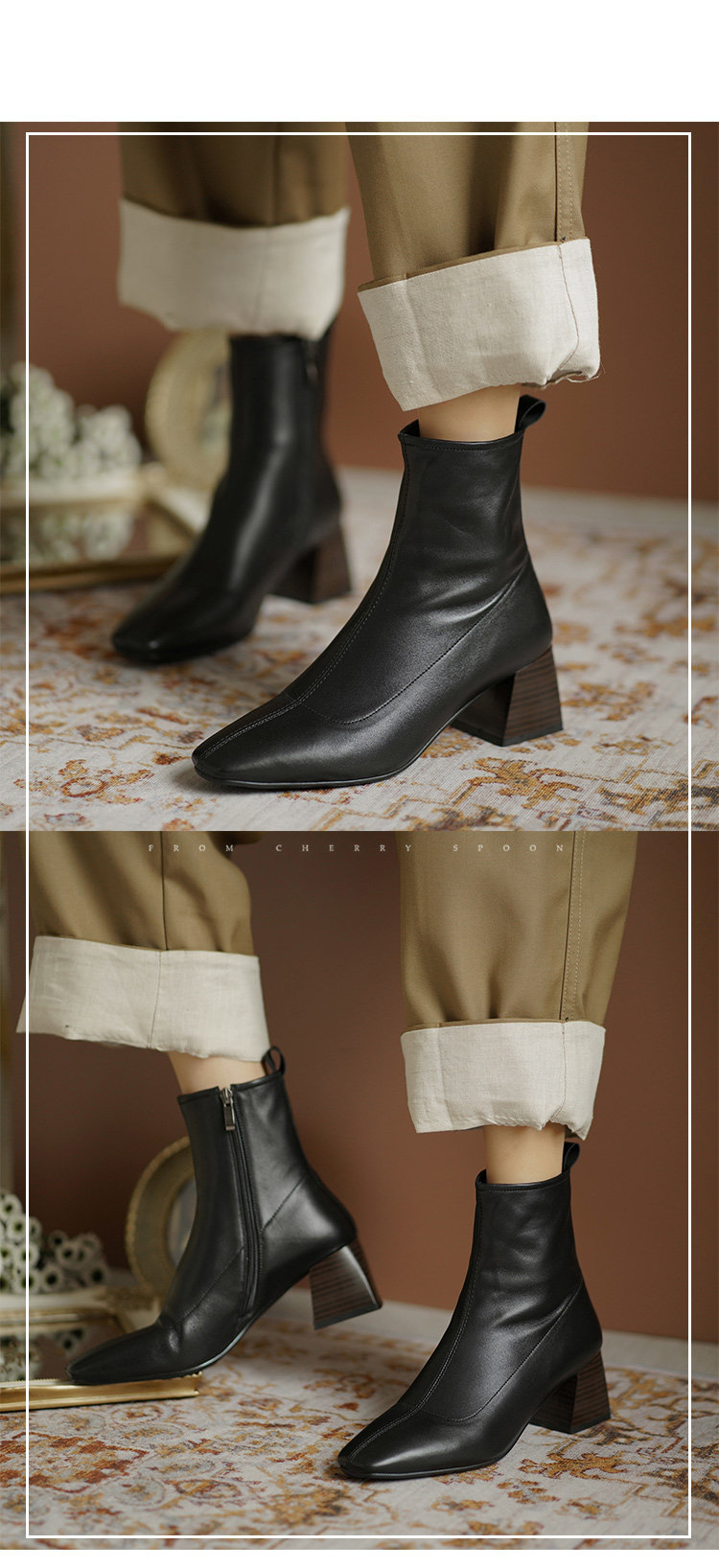 Демисезонные коричневые короткие сапоги, черные ботинки, французский стиль