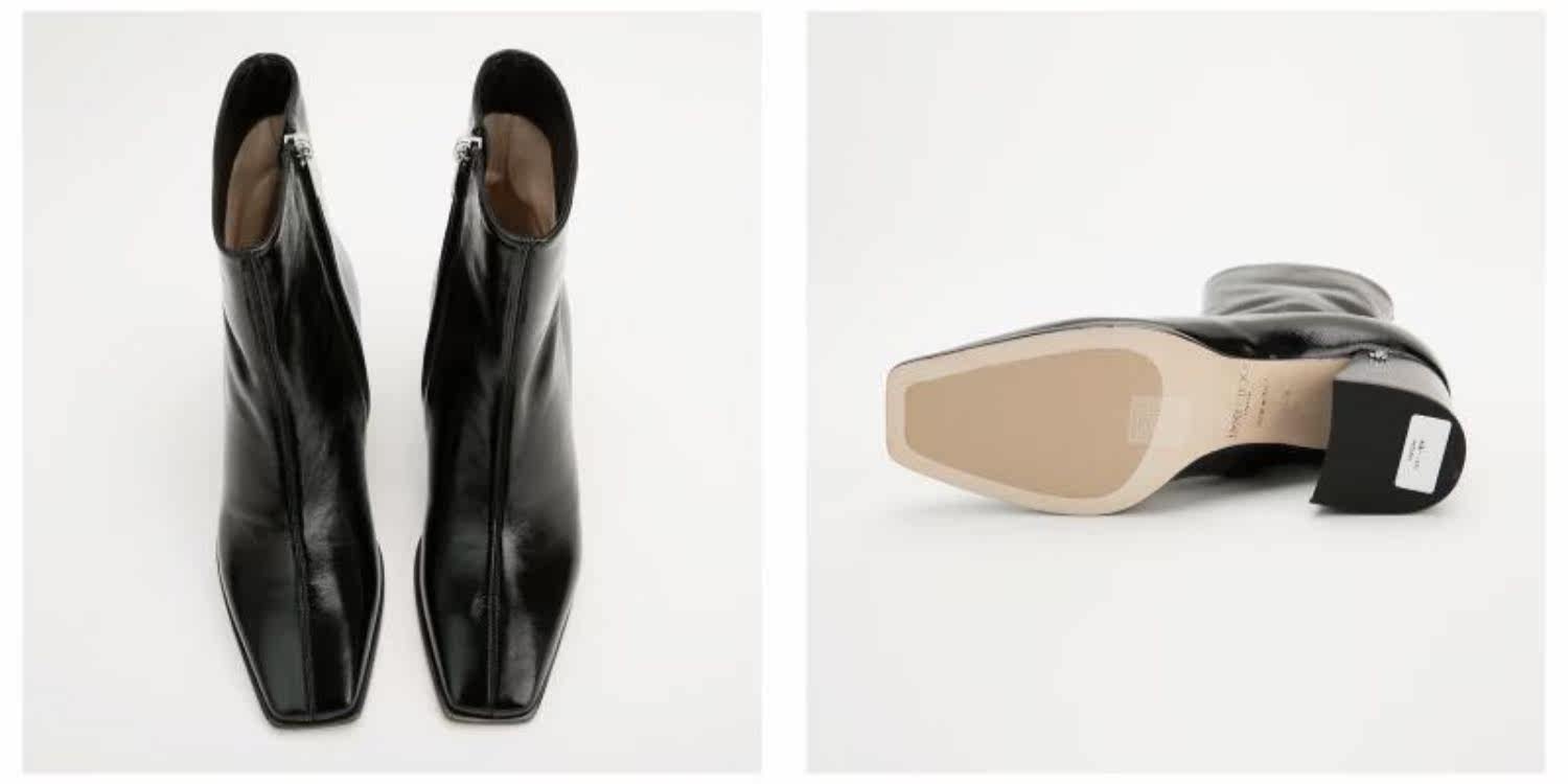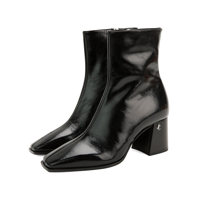 Серия Джимми Чу Брайель чернокожие материал для кожи ретро -квадратная голова.