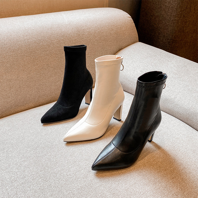 Черные высокие универсальные демисезонные короткие сапоги с заостренным носом с молнией, 2021 года, в корейском стиле