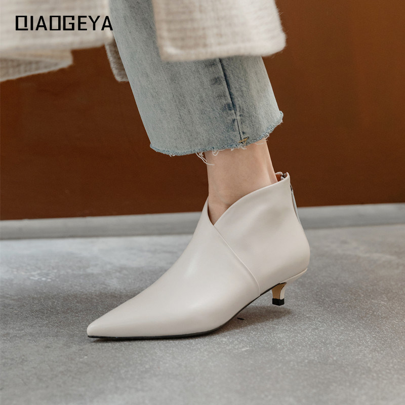 Белые короткие сапоги, демисезонные ботильоны, ботинки, 2020, из натуральной кожи