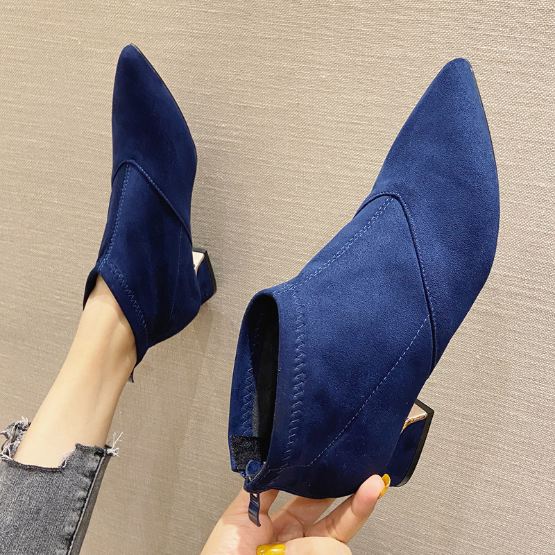 Замшевые демисезонные сетчатые короткие сапоги с заостренным носом, большой размер, 2020 года, популярно в интернете