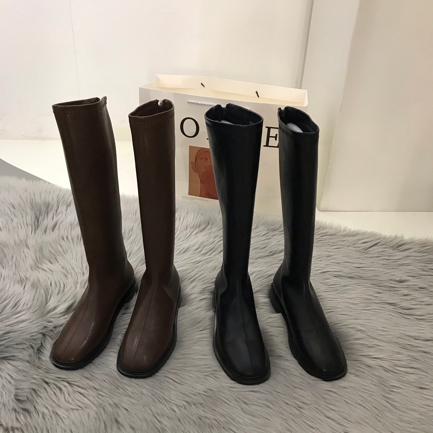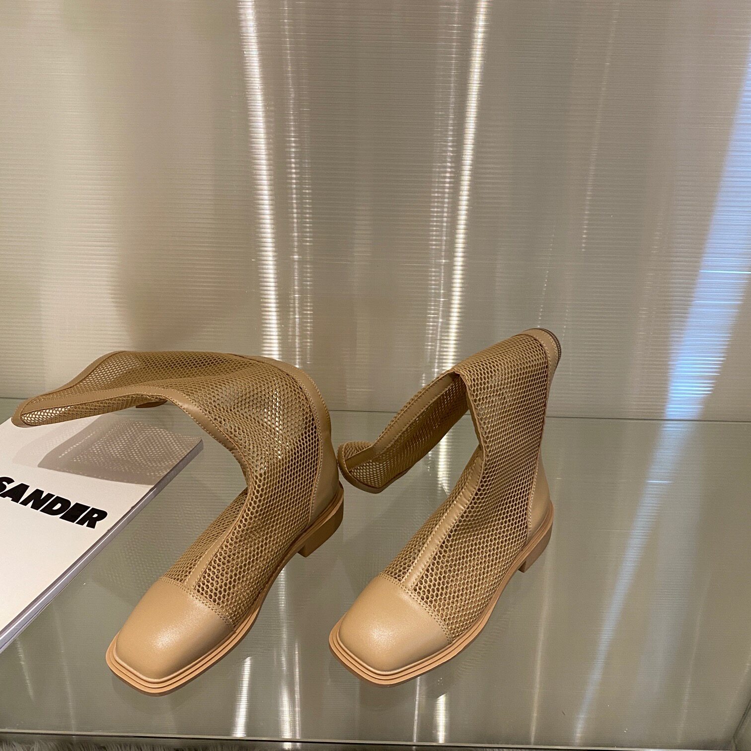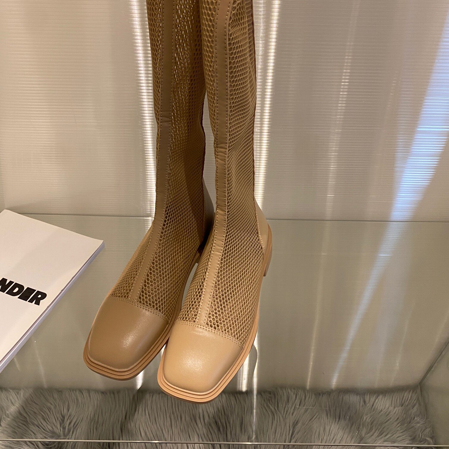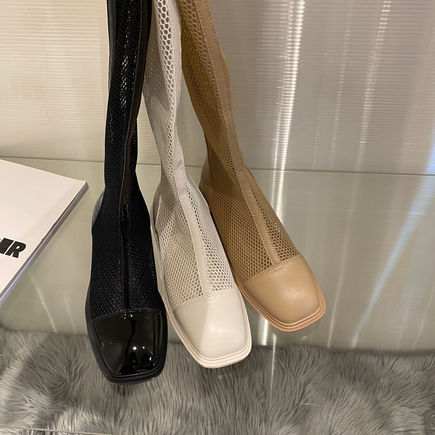 Белые высокие сапоги, весенние коричневые летние тонкие сетчатые ботинки