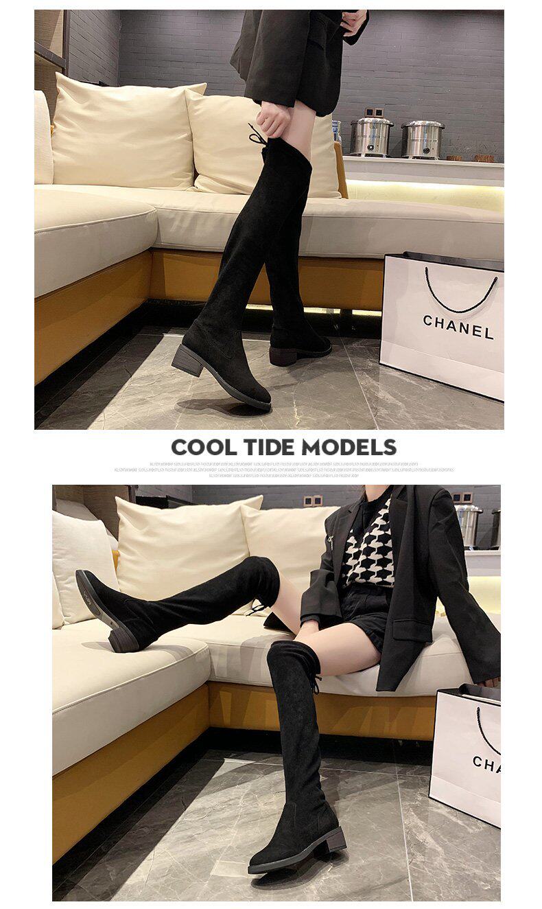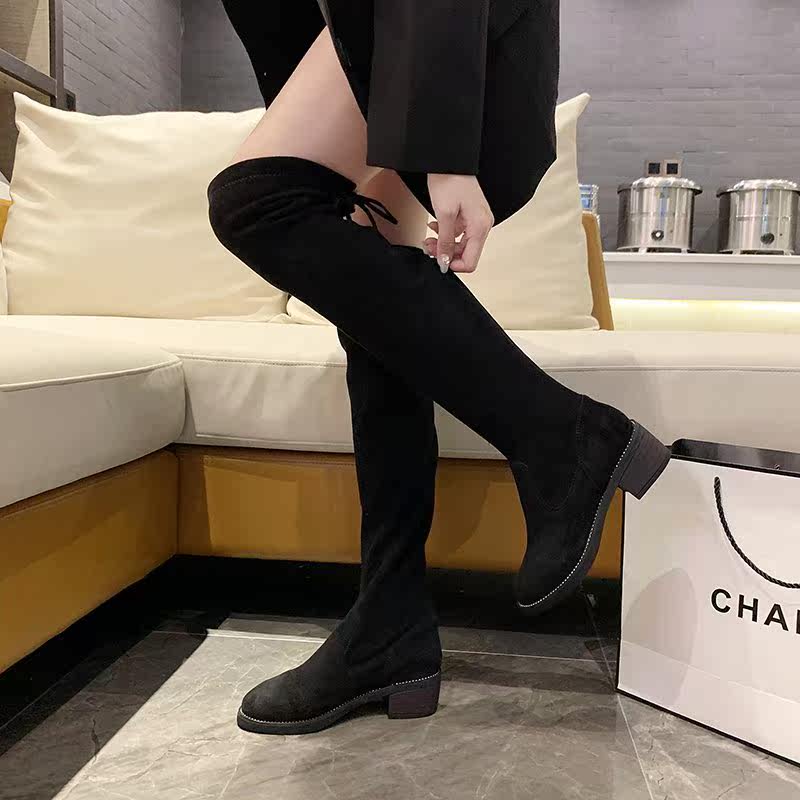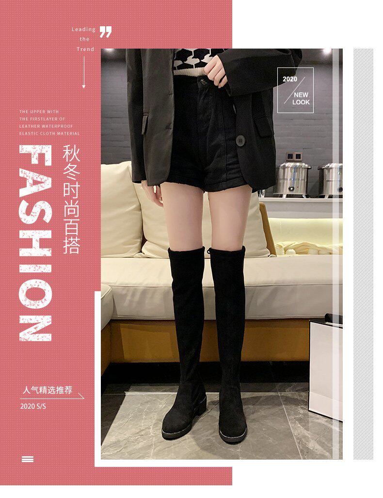 Черные эластичные демисезонные высокие сапоги, подходит для подростков, 2020, в корейском стиле