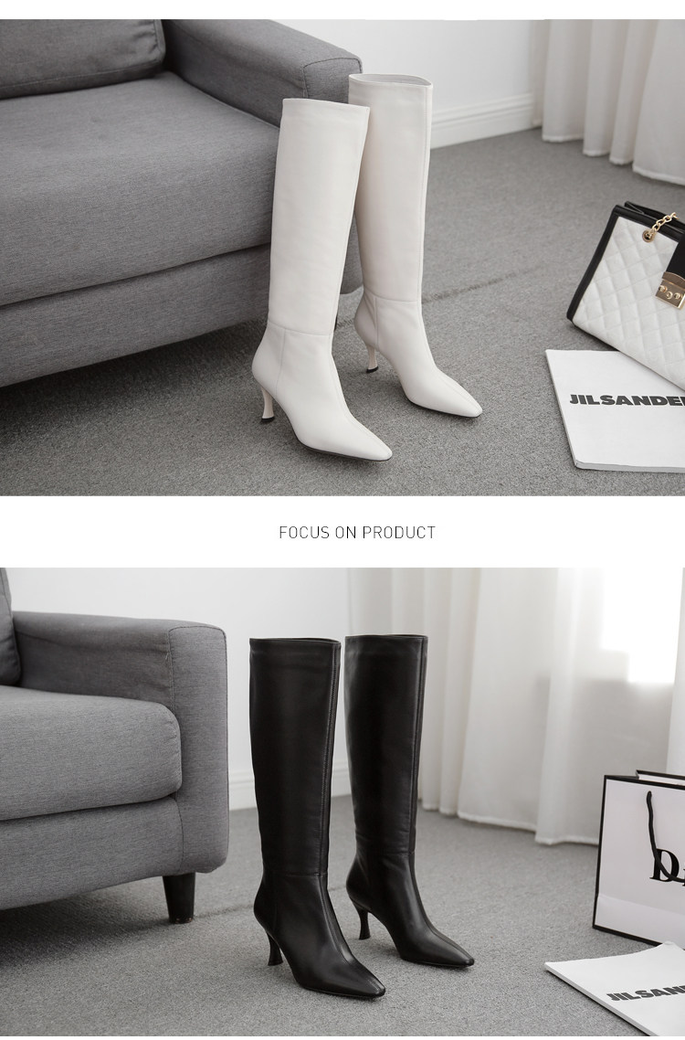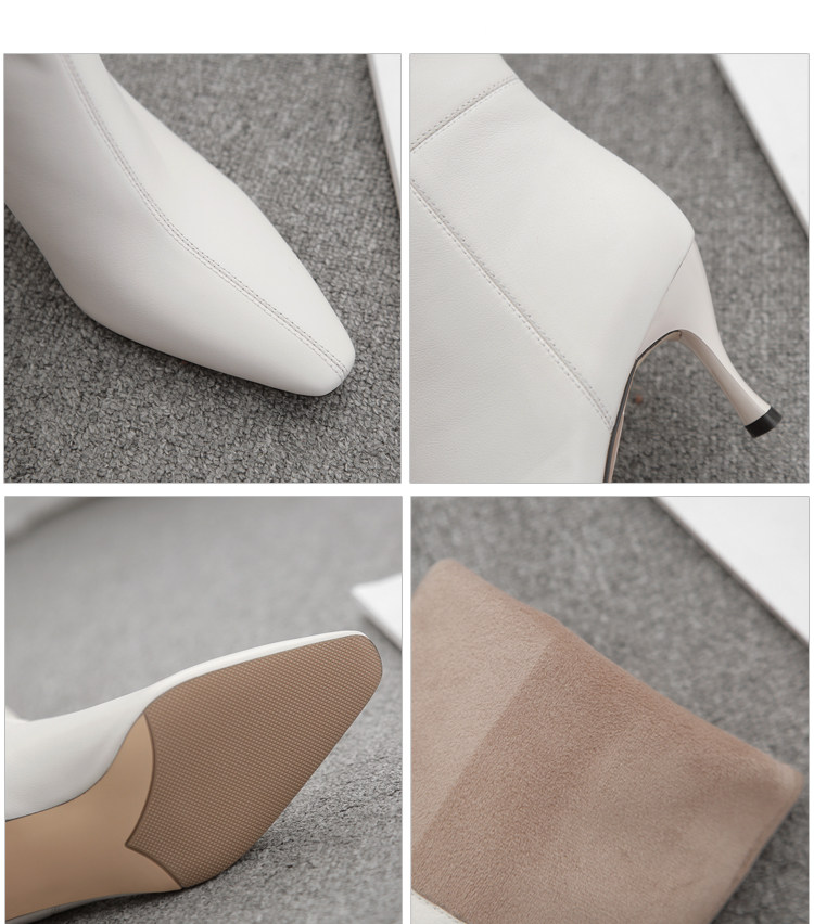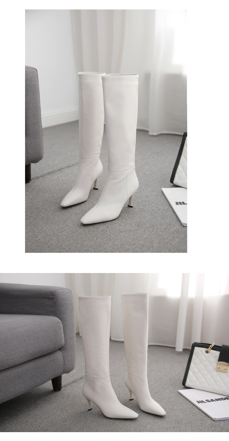 Белые высокие сапоги, кожаный чехол с заостренным носом, обувь на высоком каблуке, светлые ботинки