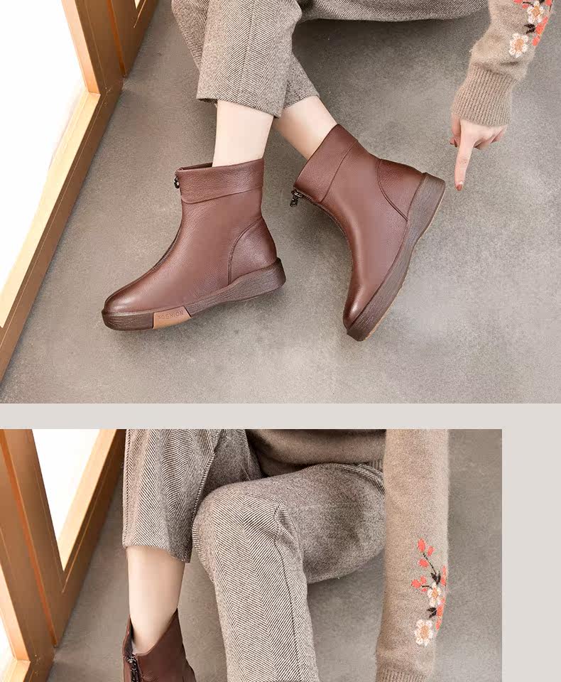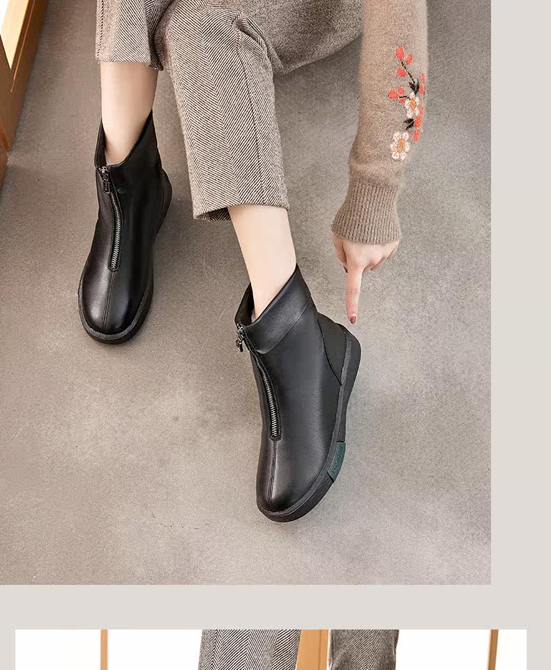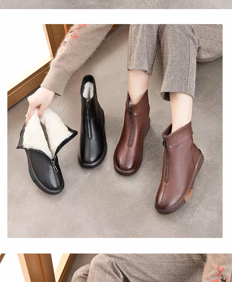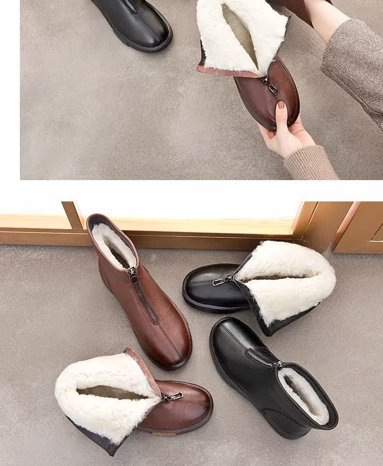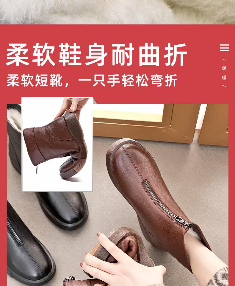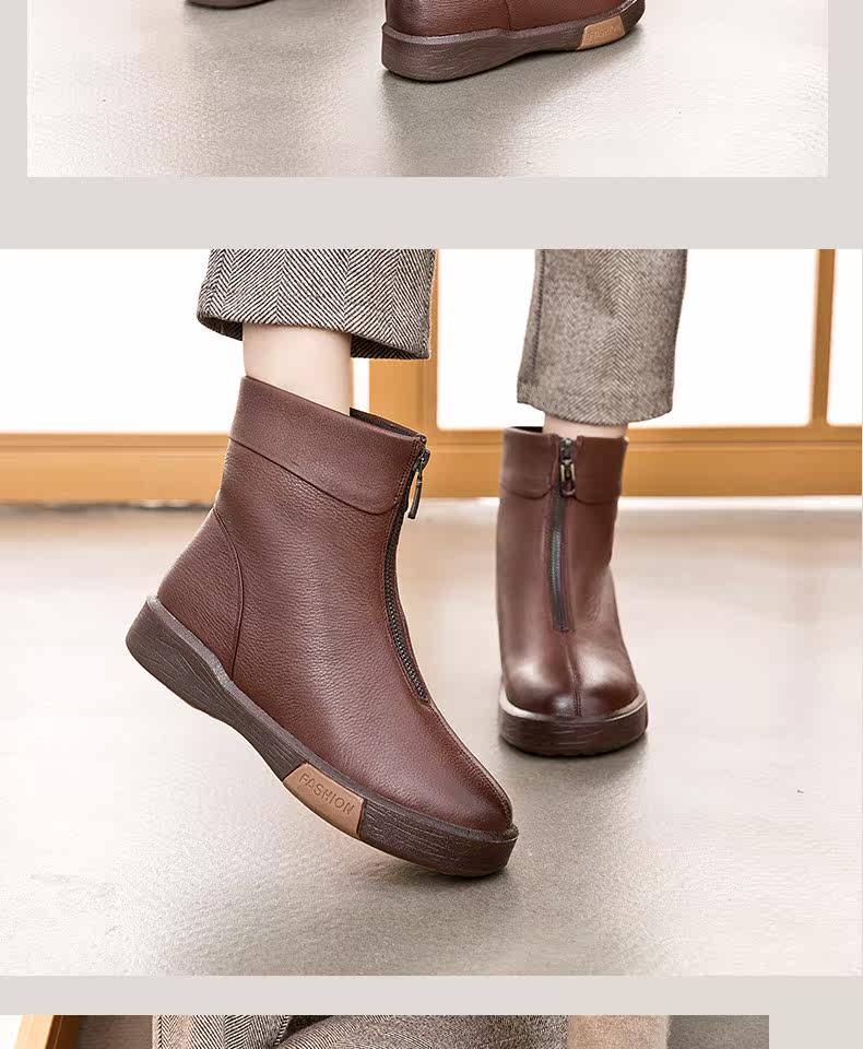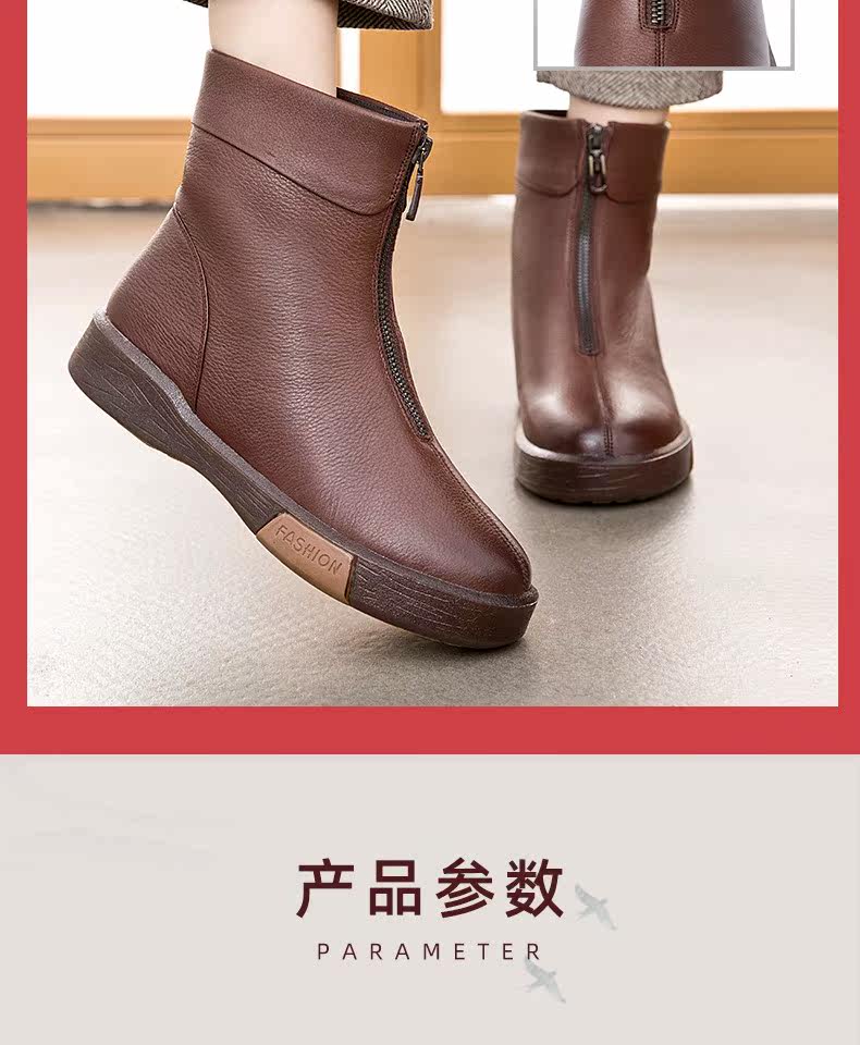 Утепленная обувь для матери, короткие сапоги с молнией, ботинки для кожаной обуви, из натуральной кожи, средней длины, для среднего возраста