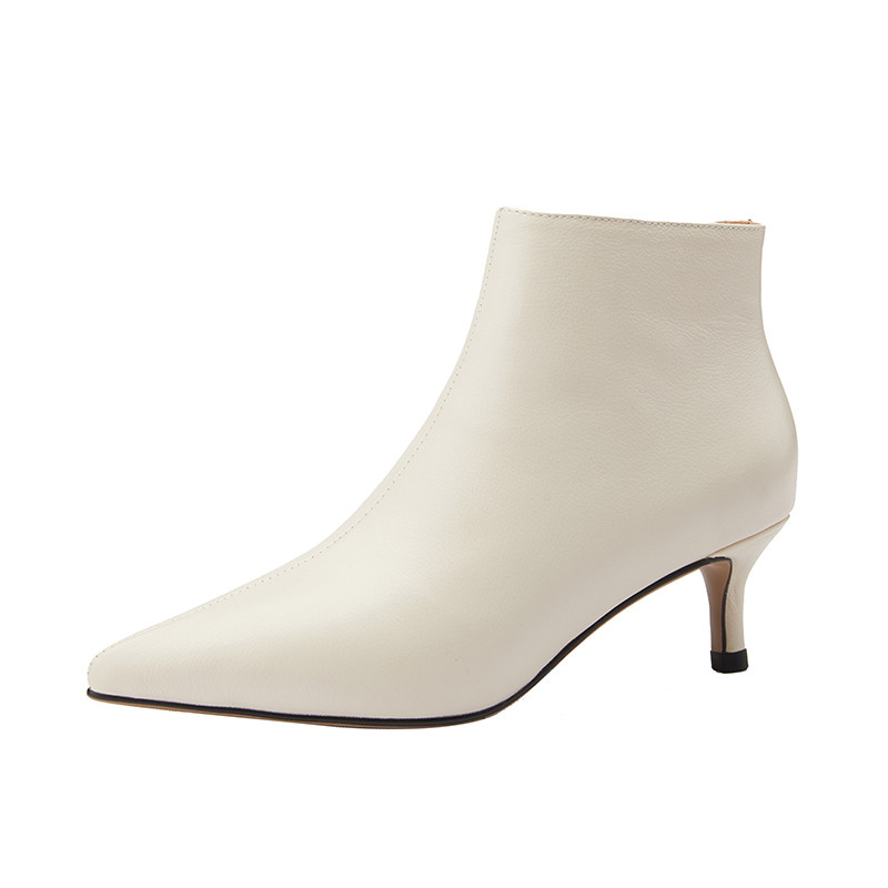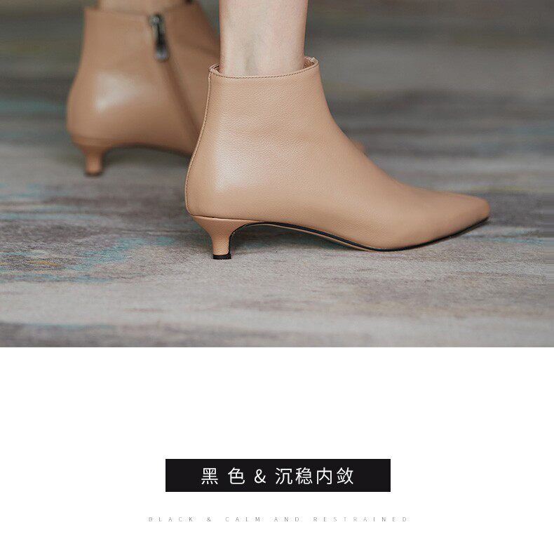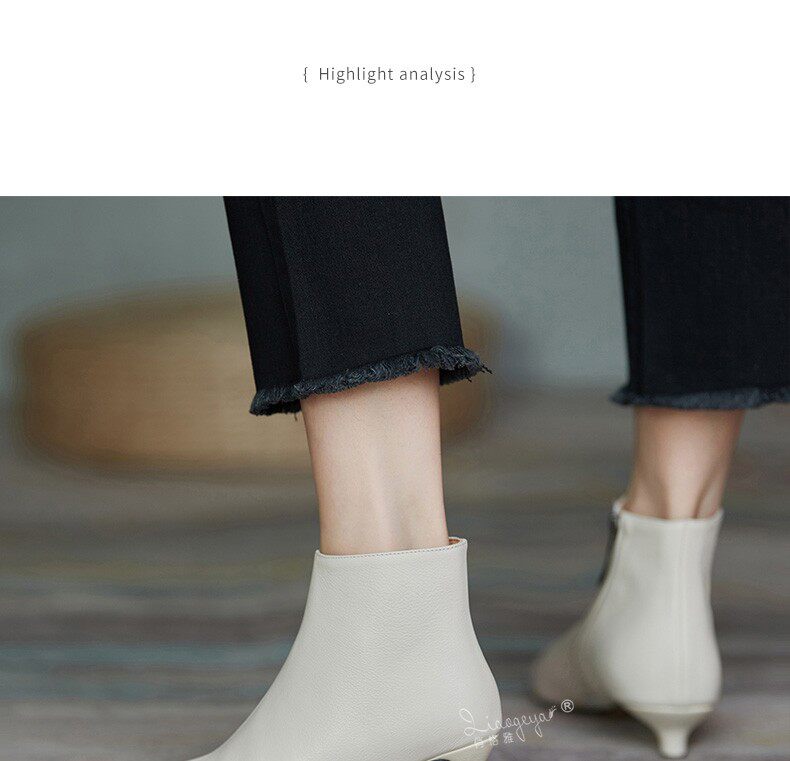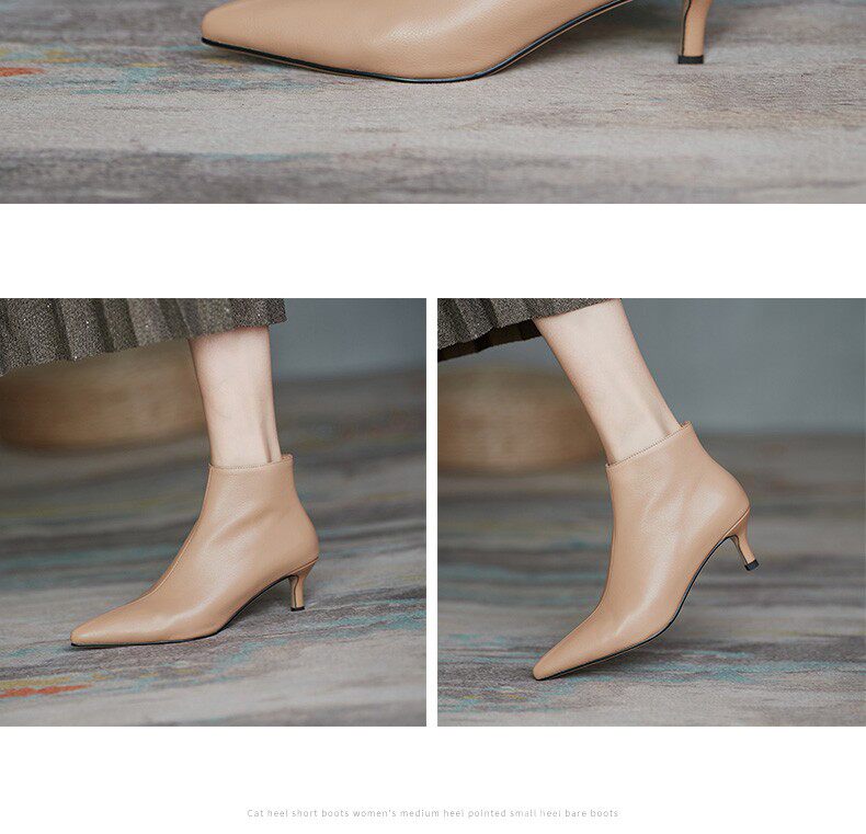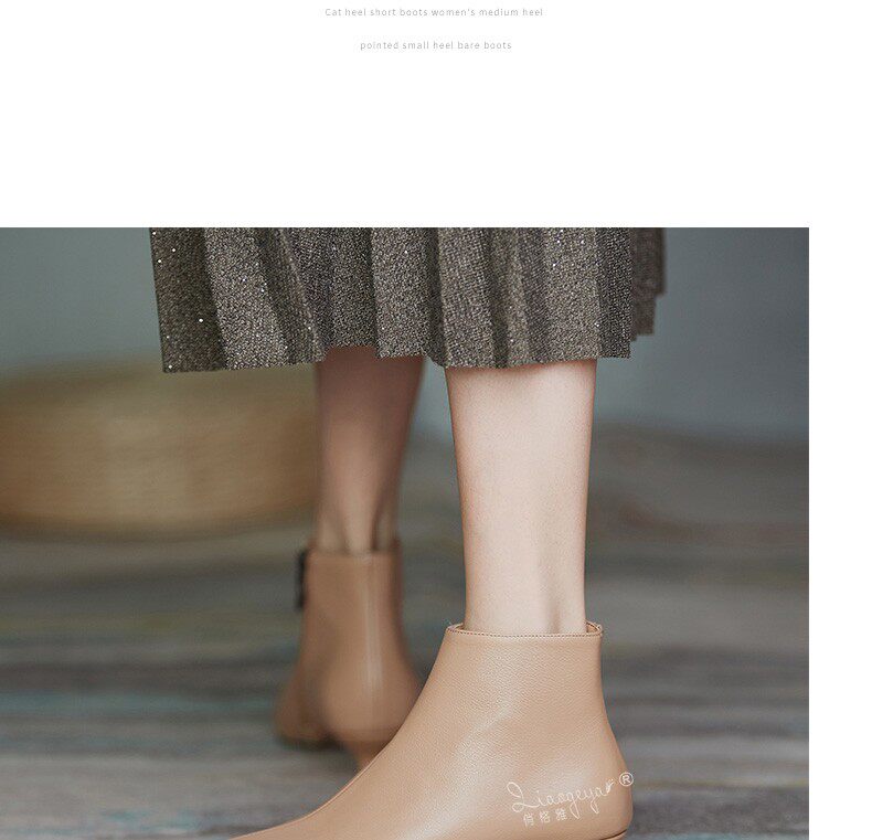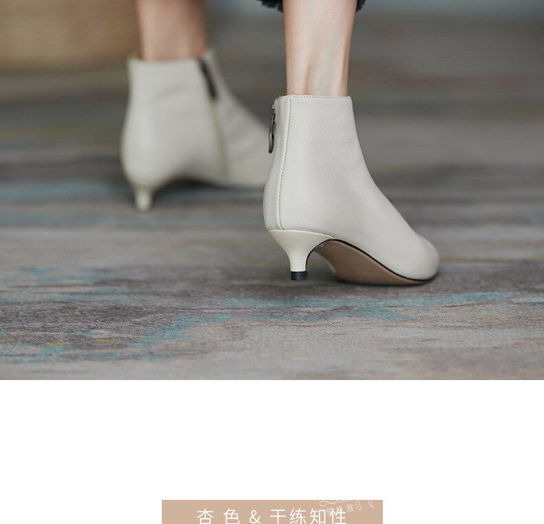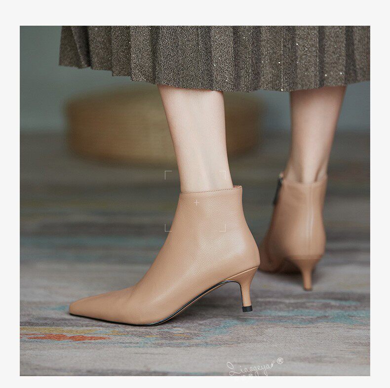 Демисезонные короткие сапоги, абрикосовые ботильоны, из натуральной кожи, французский стиль