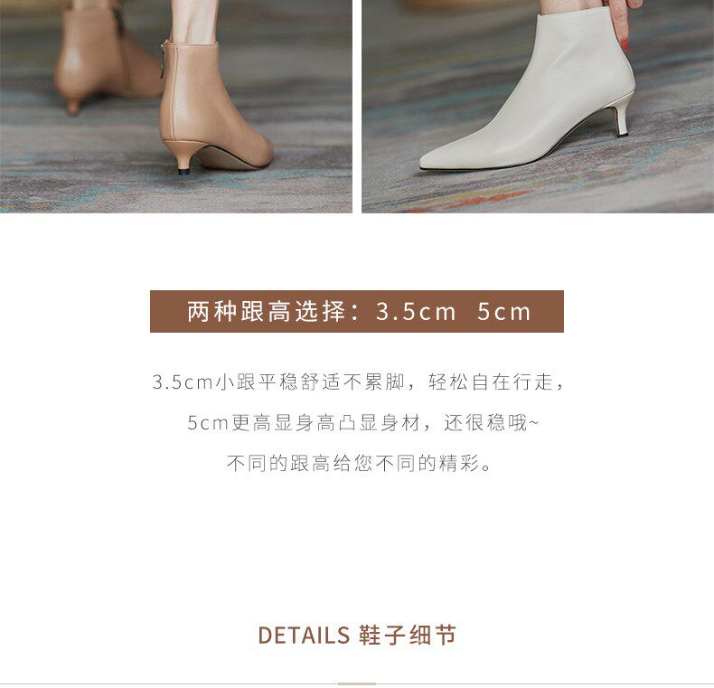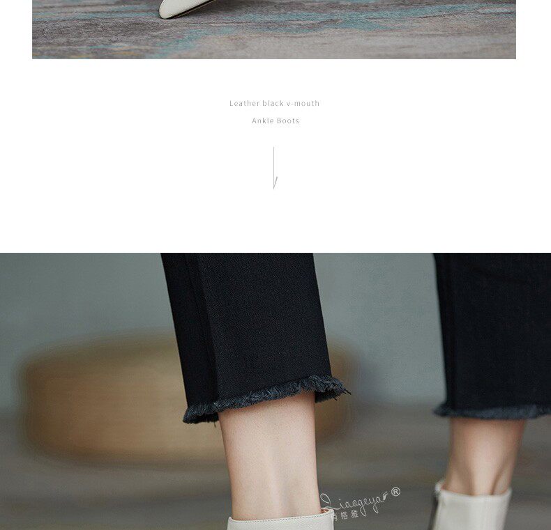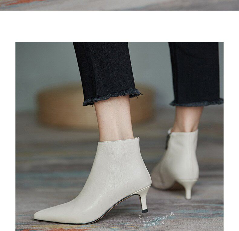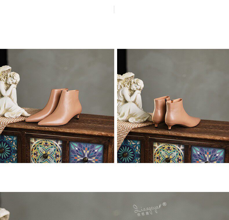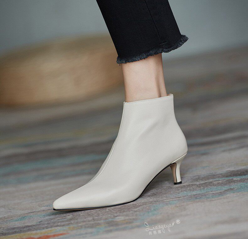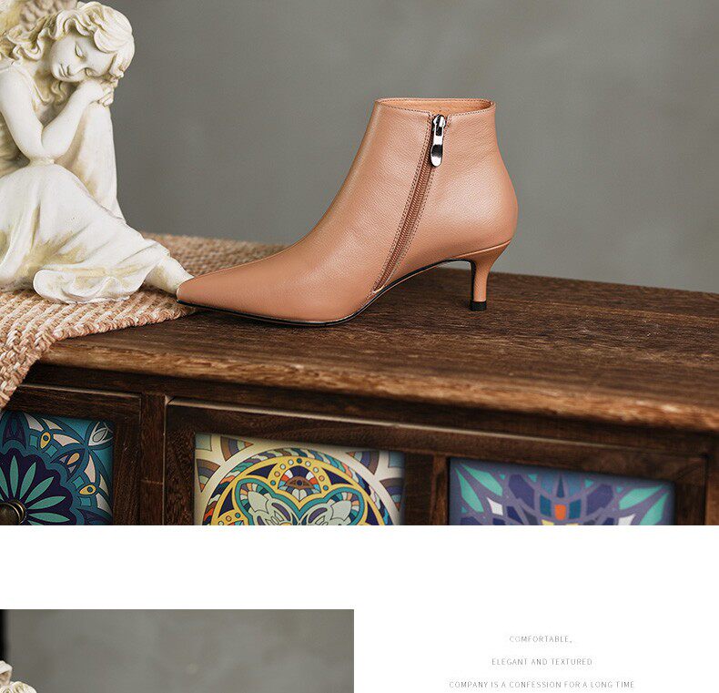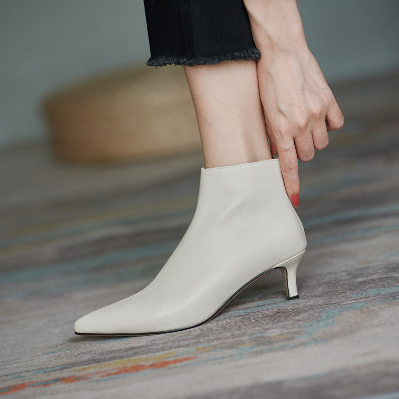 Демисезонные короткие сапоги, абрикосовые ботильоны, из натуральной кожи, французский стиль