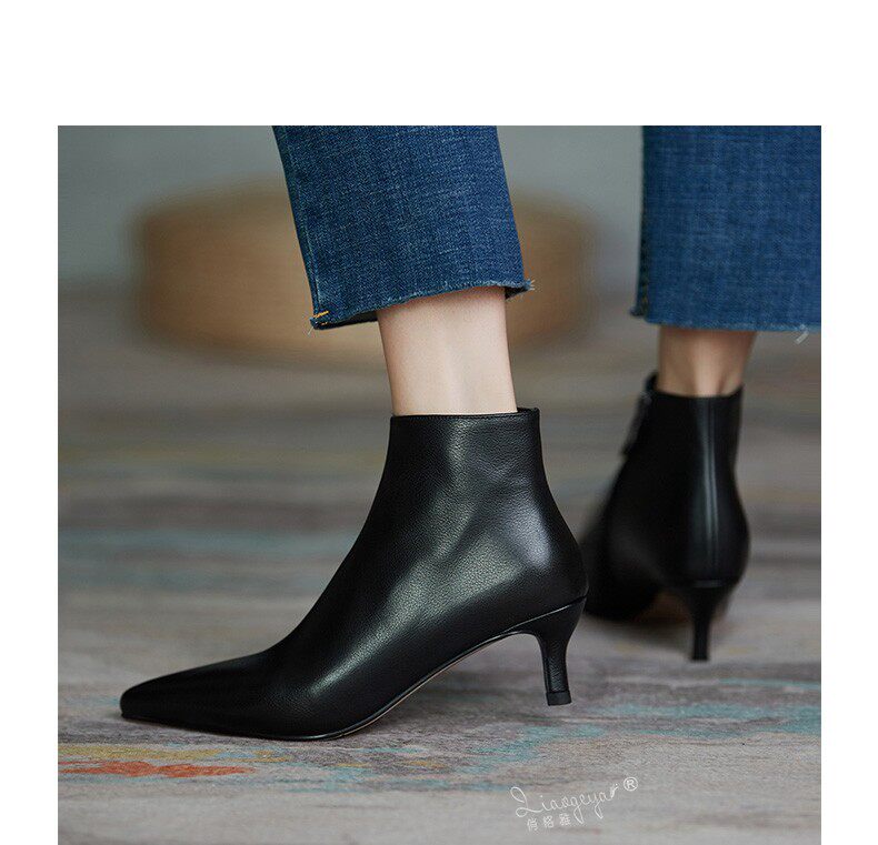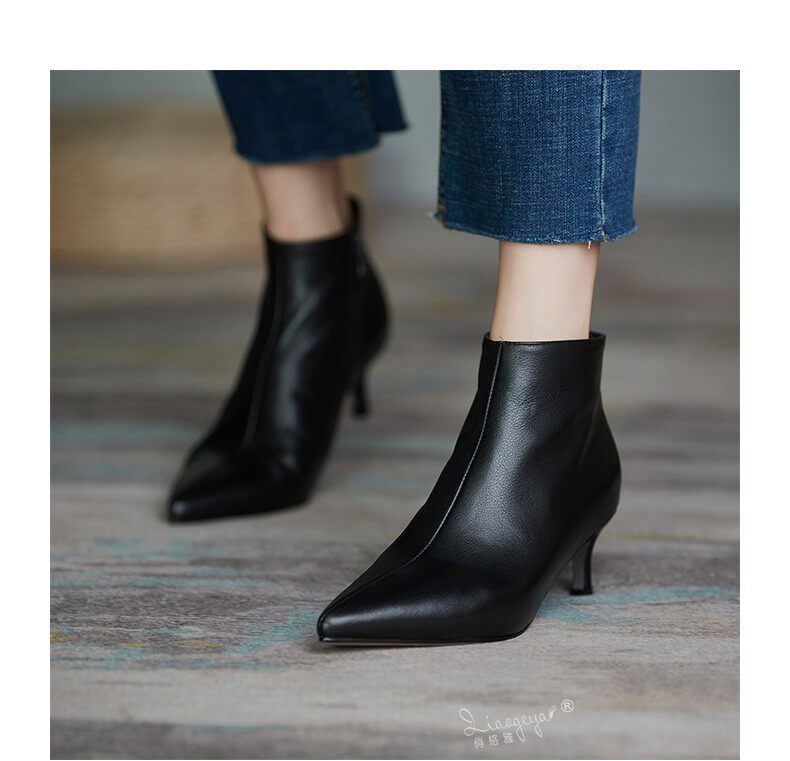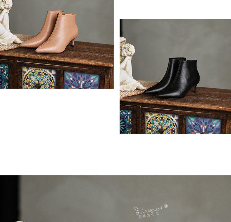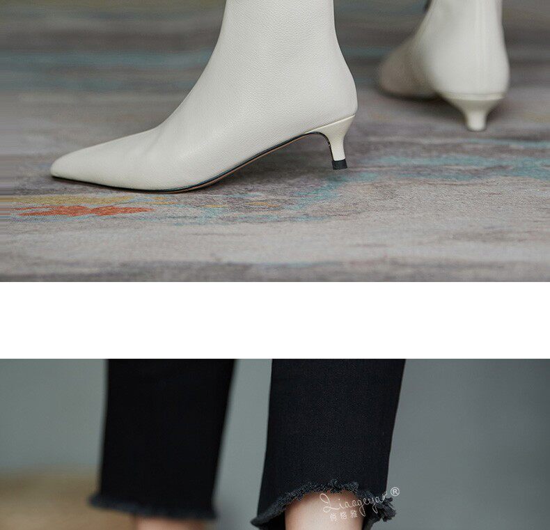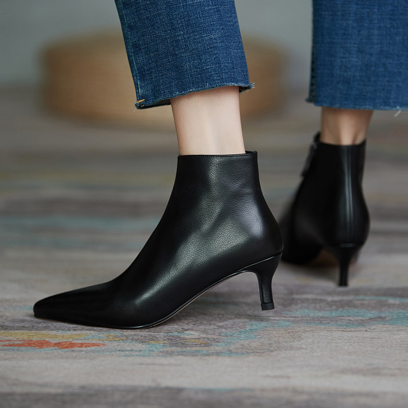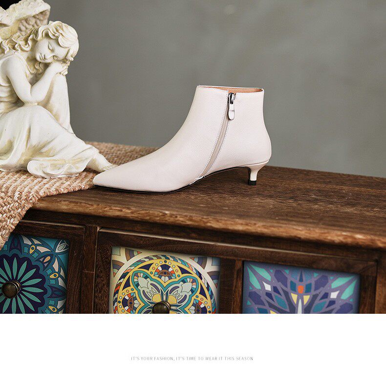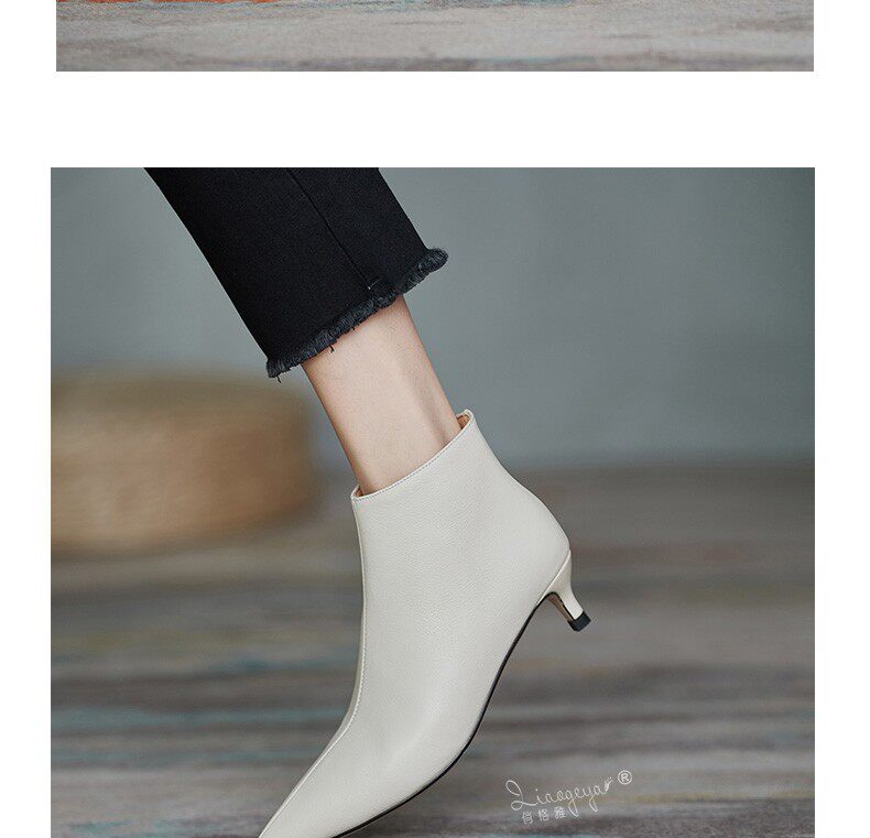 Демисезонные короткие сапоги, абрикосовые ботильоны, из натуральной кожи, французский стиль