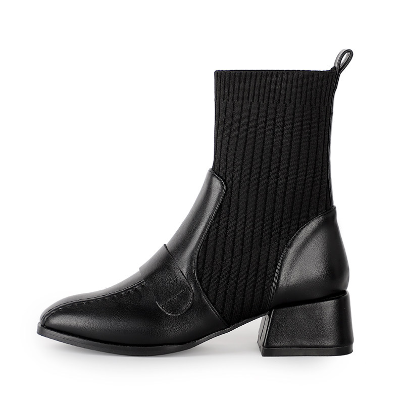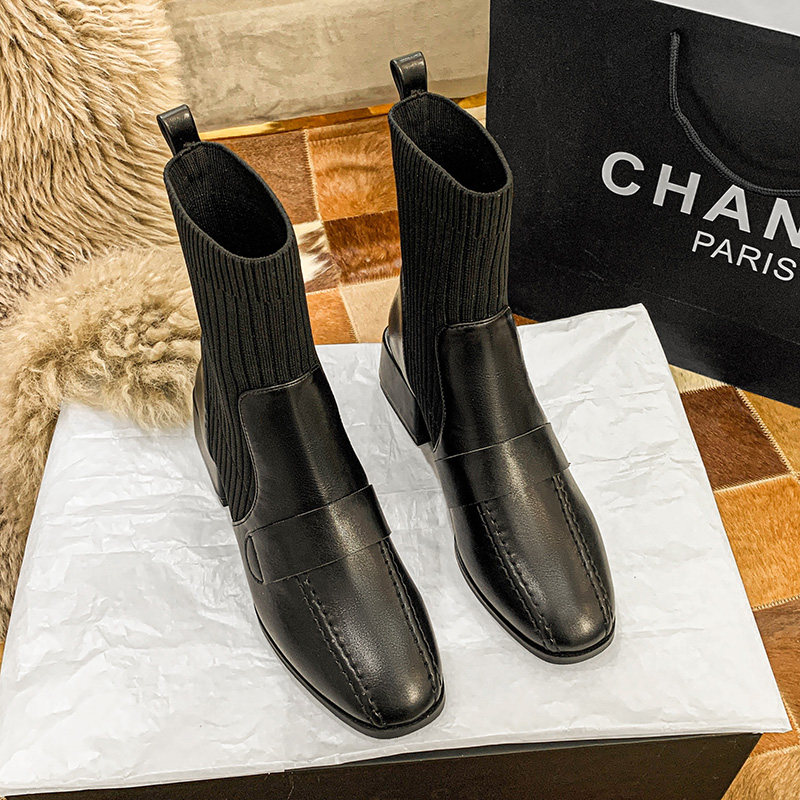 Martens, короткие сапоги, демисезонные черные эластичные высокие ботинки, коллекция 2023, французский стиль