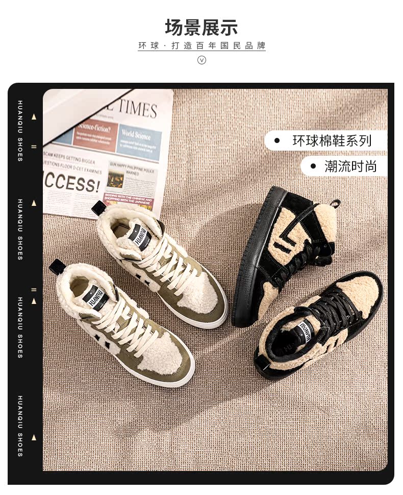环球 Зимняя высокая универсальная флисовая обувь, кроссовки, сапоги, коллекция 2021