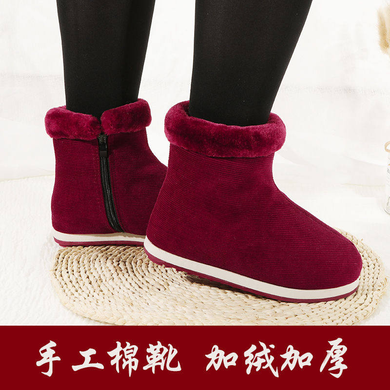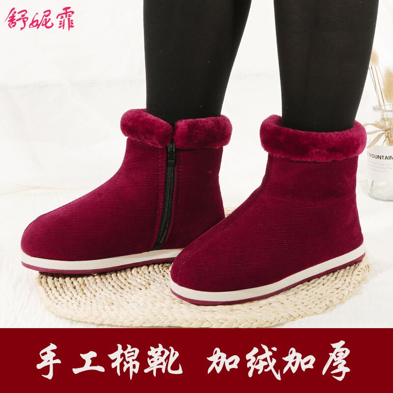 Хлопчатобумажная обувь ручной работы, высококачественные вельветовые хлопчатобумажные сапоги, зимние сапоги для женщин, а также обувь из бархата и утолщенного хлопка для сохранения тепла, для среднего и пожилого возраста, нескользящая и износостойкая.