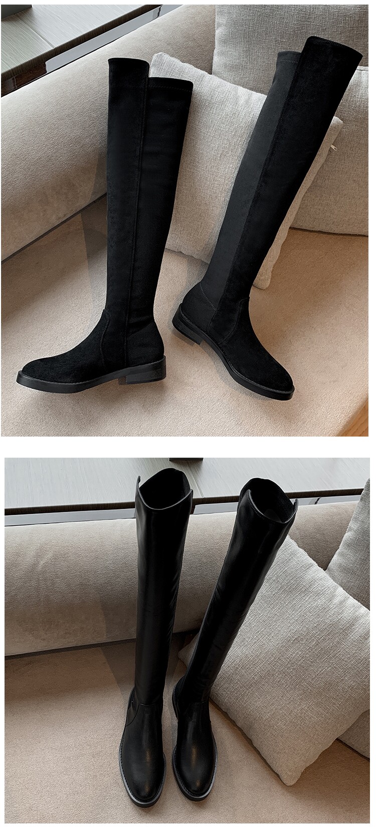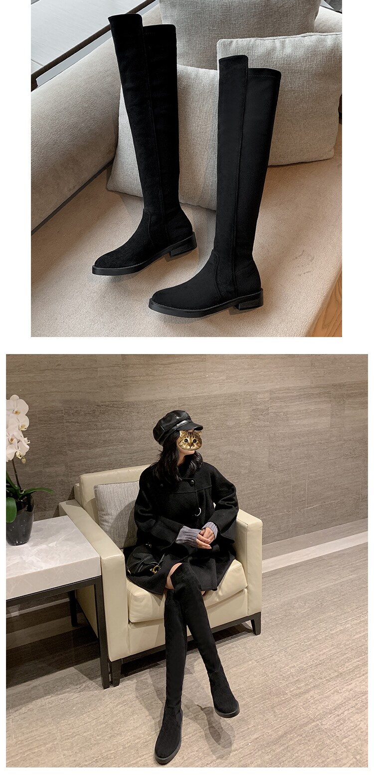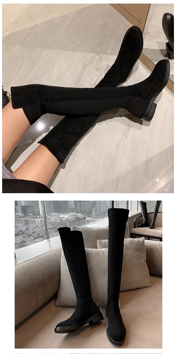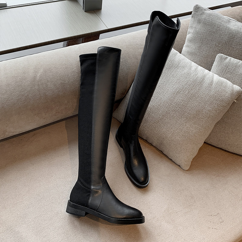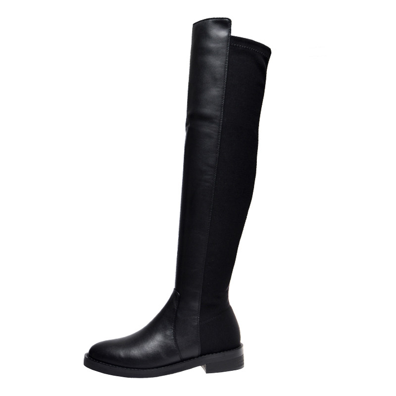 Демисезонные ботинки, универсальные эластичные флисовые высокие сапоги, по фигуре, из натуральной кожи
