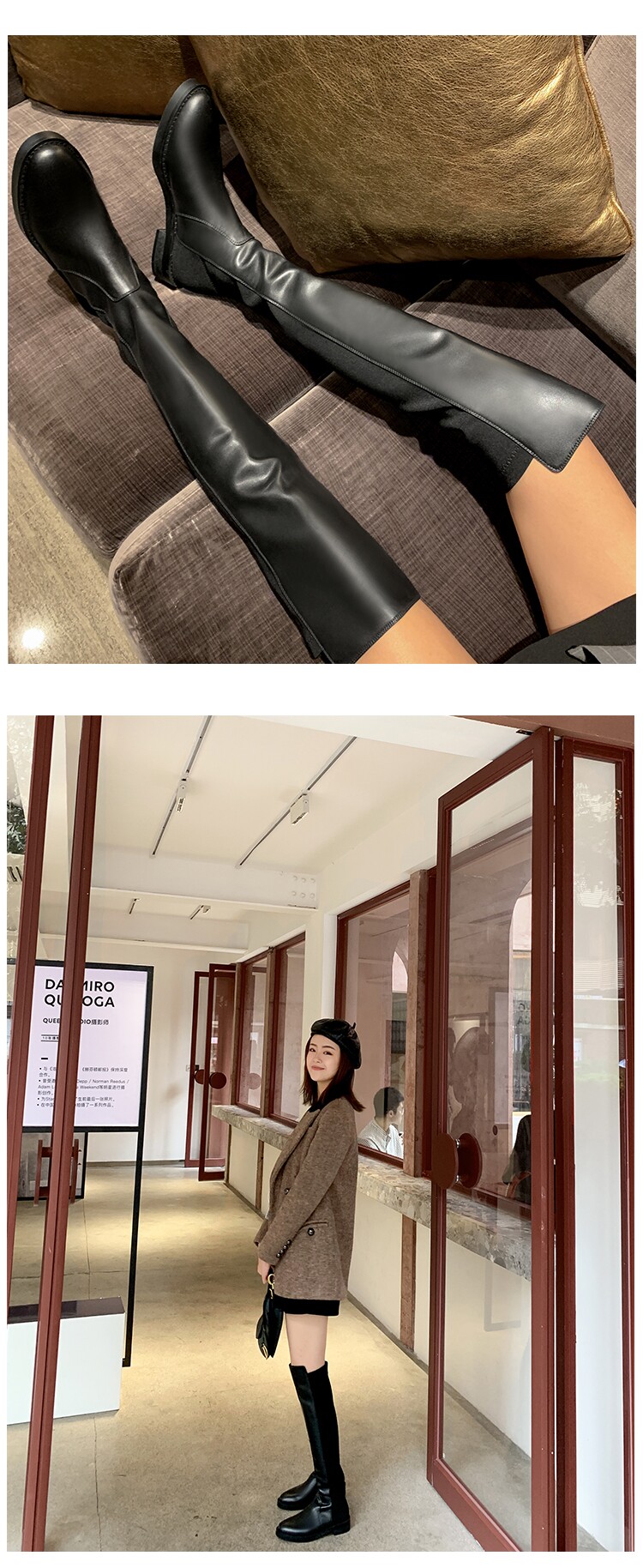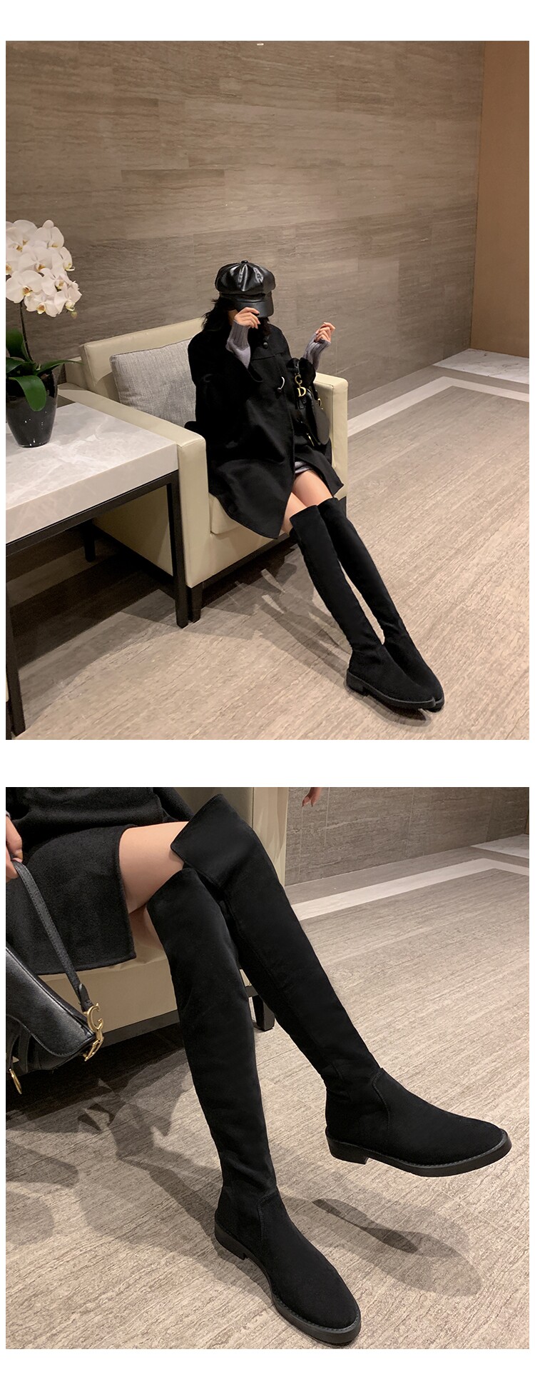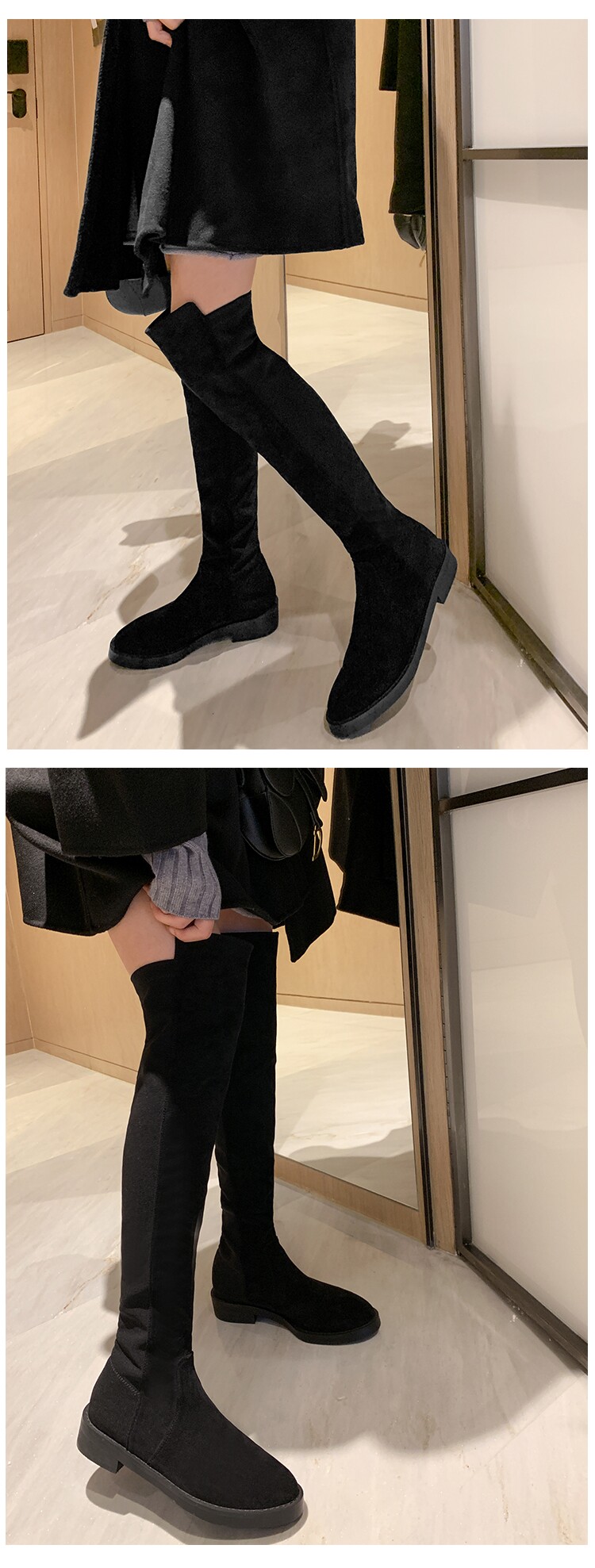 Демисезонные ботинки, универсальные эластичные флисовые высокие сапоги, по фигуре, из натуральной кожи