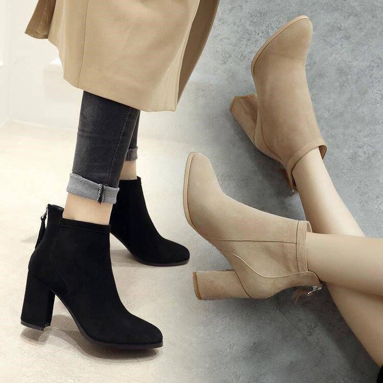 Удерживающие тепло короткие сапоги, демисезонные зимние туфли на высоком каблуке, флисовые ботильоны, ботинки, 2020