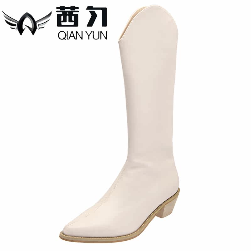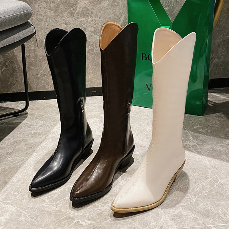Джинсовые универсальные высокие сапоги с молнией с заостренным носом, 2020