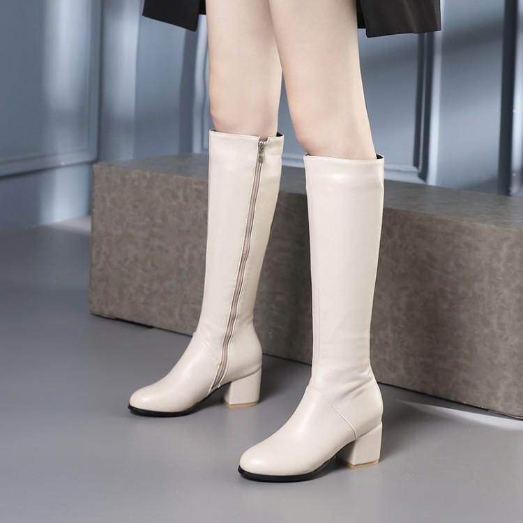 Демисезонные бежевые высокие сапоги с молнией, модные очень большие ботинки, большой размер