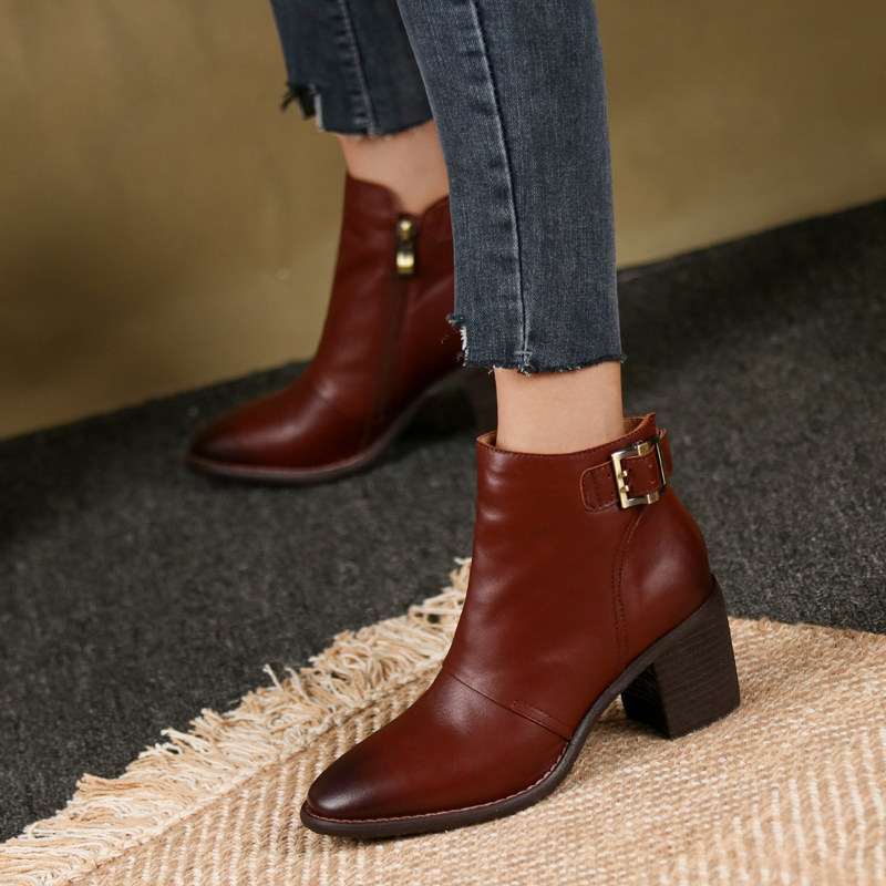 Martens, коричневые комфортные ботинки, универсальные демисезонные короткие сапоги, высокие ботильоны, из натуральной кожи