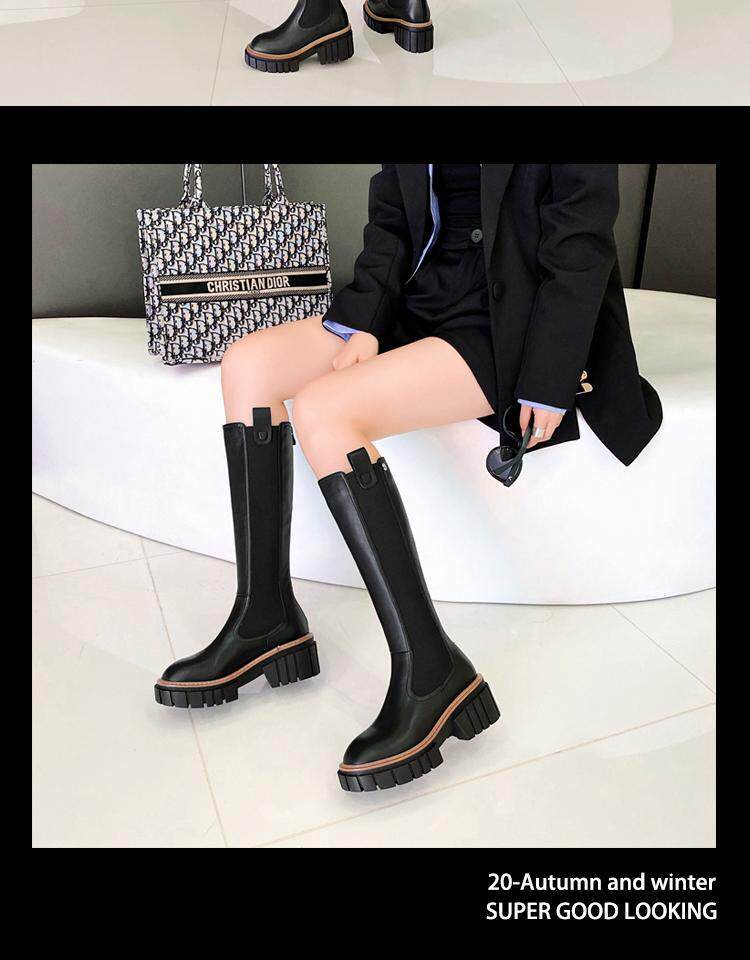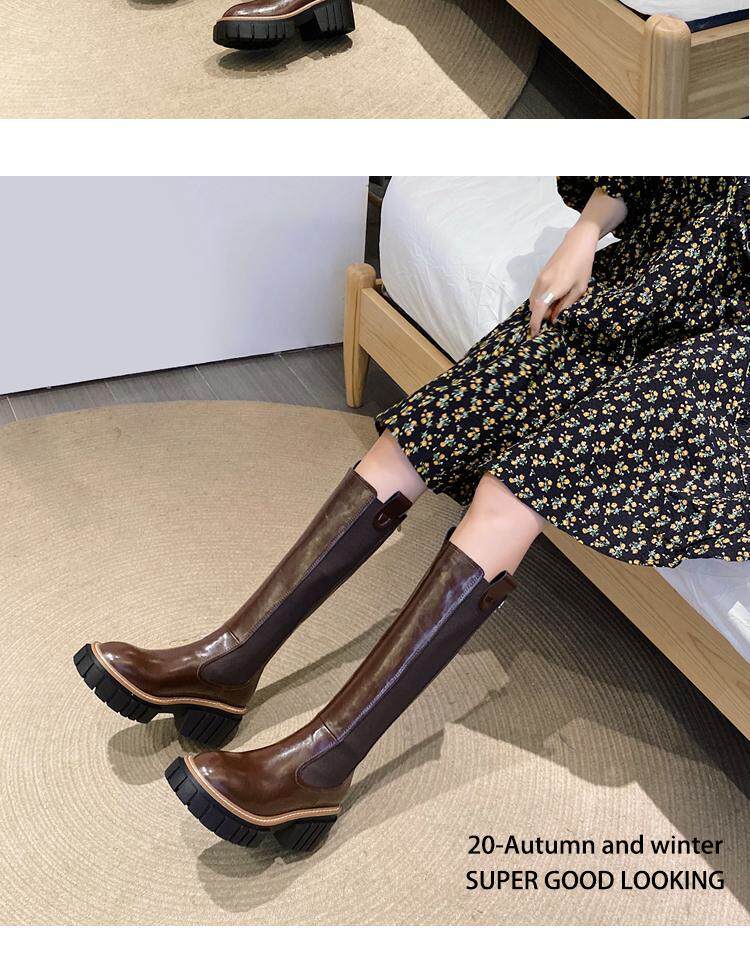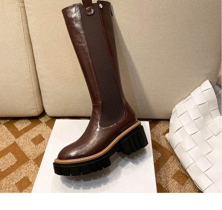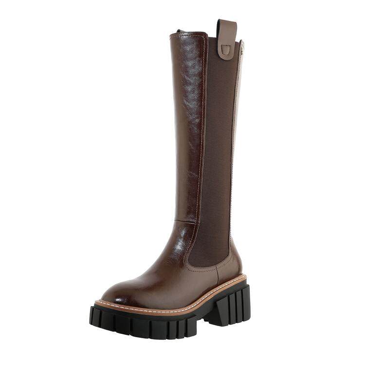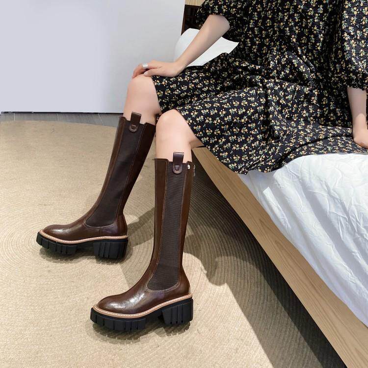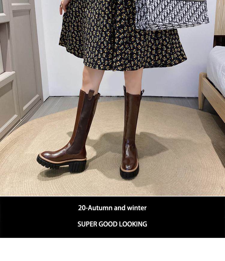 Коричневые весенние демисезонные высокие сапоги на платформе, 2020 года, подходит для подростков
