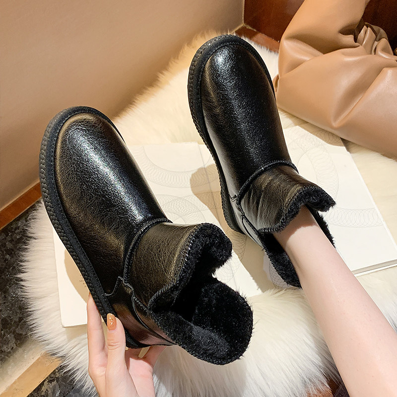 Флисовые нескользящие зимние утепленные глянцевые короткие сапоги на платформе, 2020