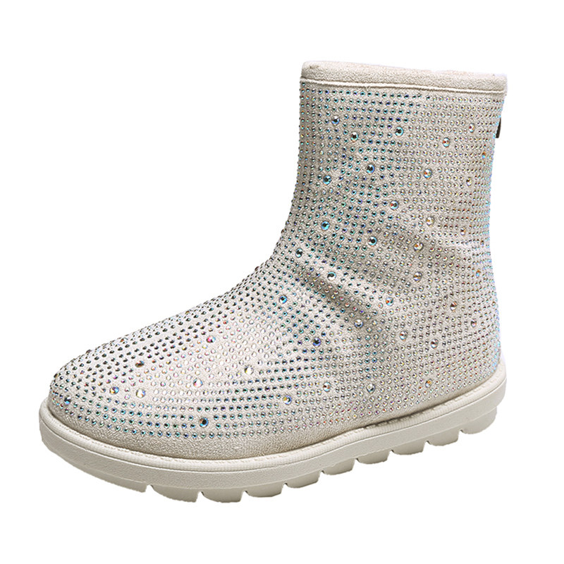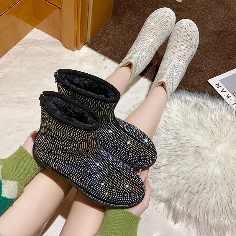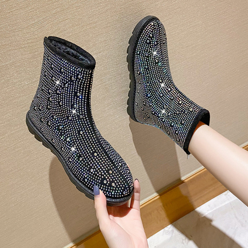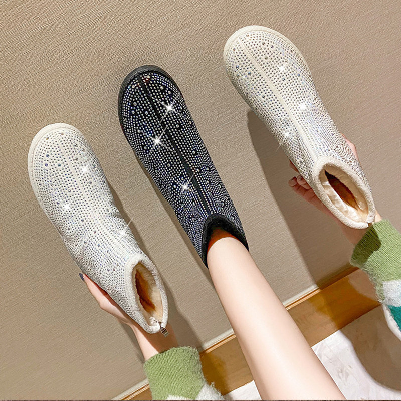 Корейский босс Rhinestone полон буровых ботинок Martin Motorcycle Boots Plus Hotte Boots, кролики отвороты двух сетевых красных женских обуви