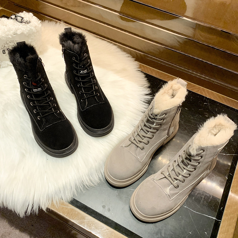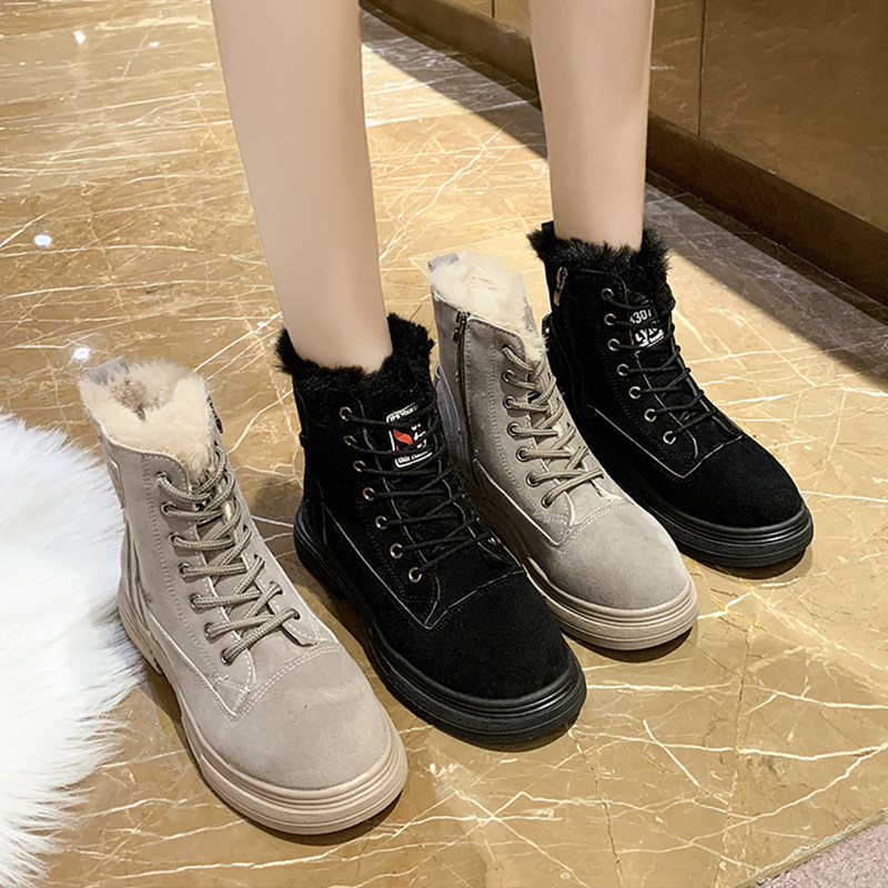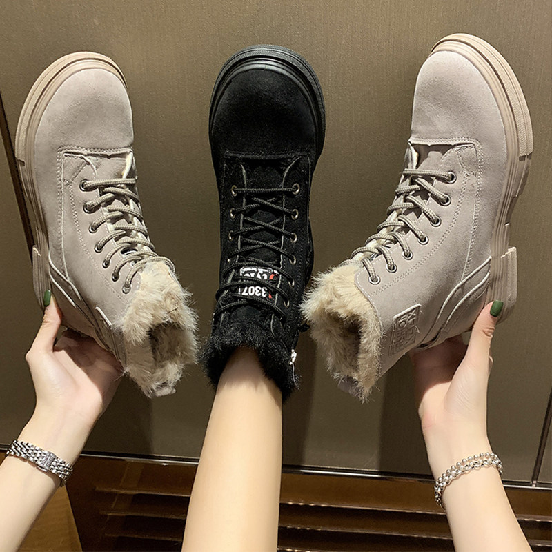 Martens, Tide, флисовая демисезонная модная высокая универсальная обувь в английском стиле, короткие сапоги, 2020, в британском стиле