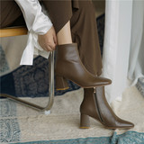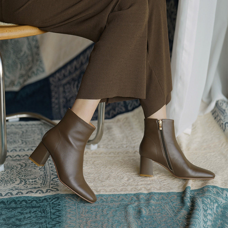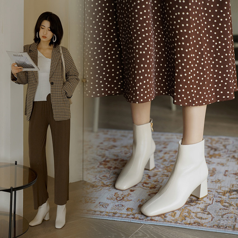 Бежевые зимние короткие сапоги на высоком каблуке, флисовые удерживающие тепло челси, в стиле Шанель, французский стиль