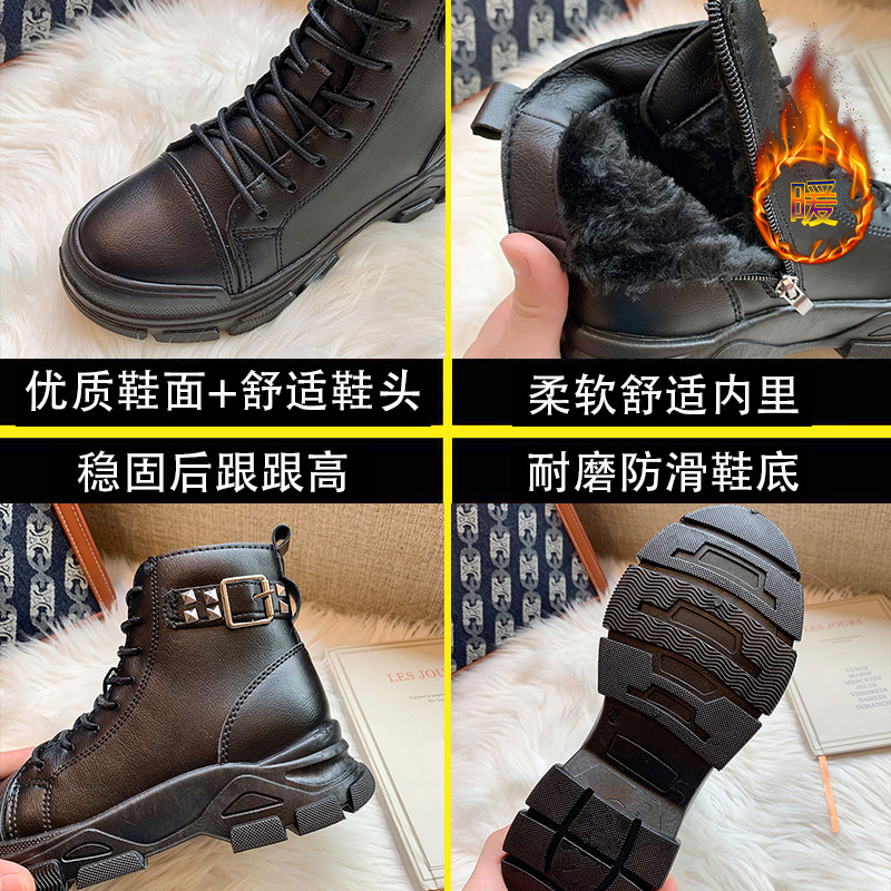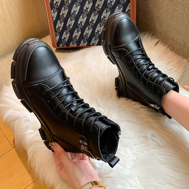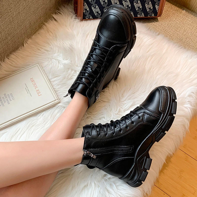 Martens, модные демисезонные универсальные черные флисовые короткие сапоги в английском стиле на платформе, 2020, в британском стиле