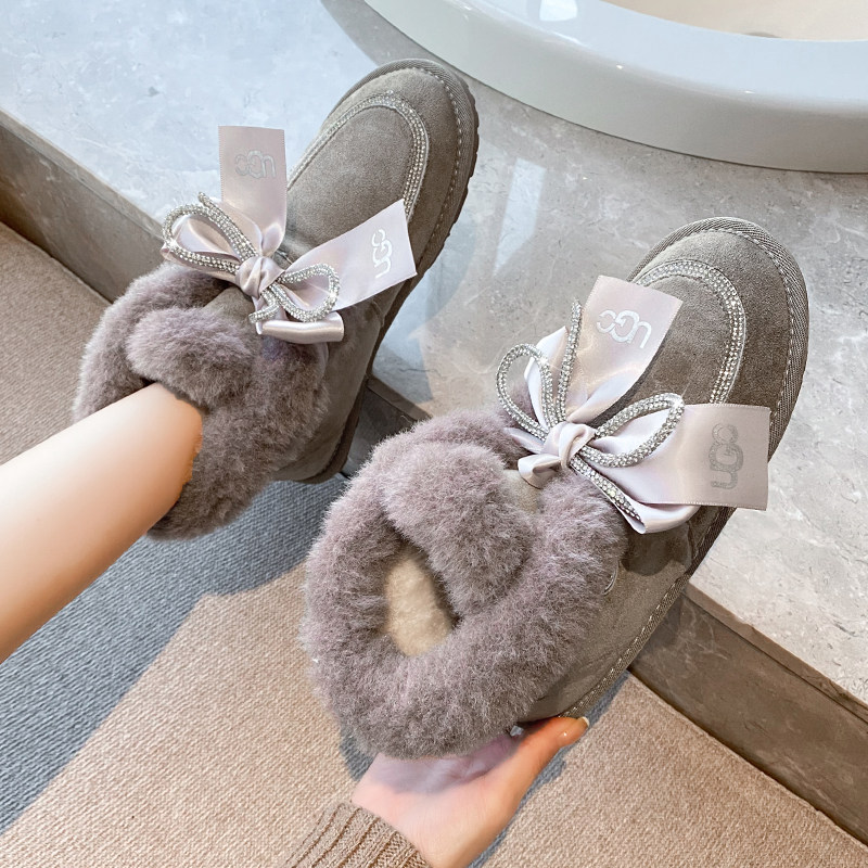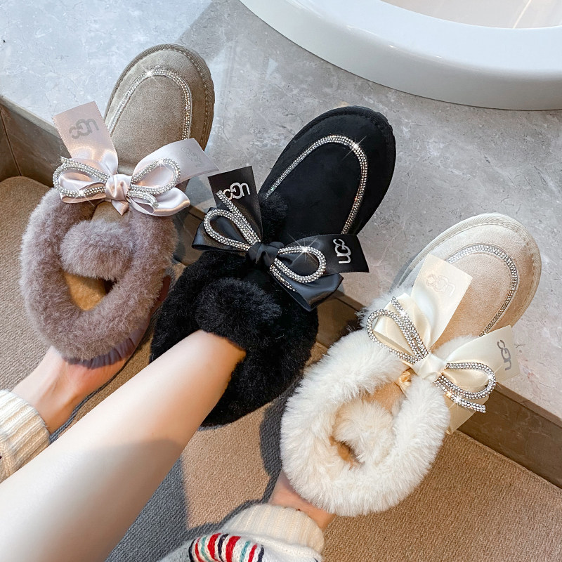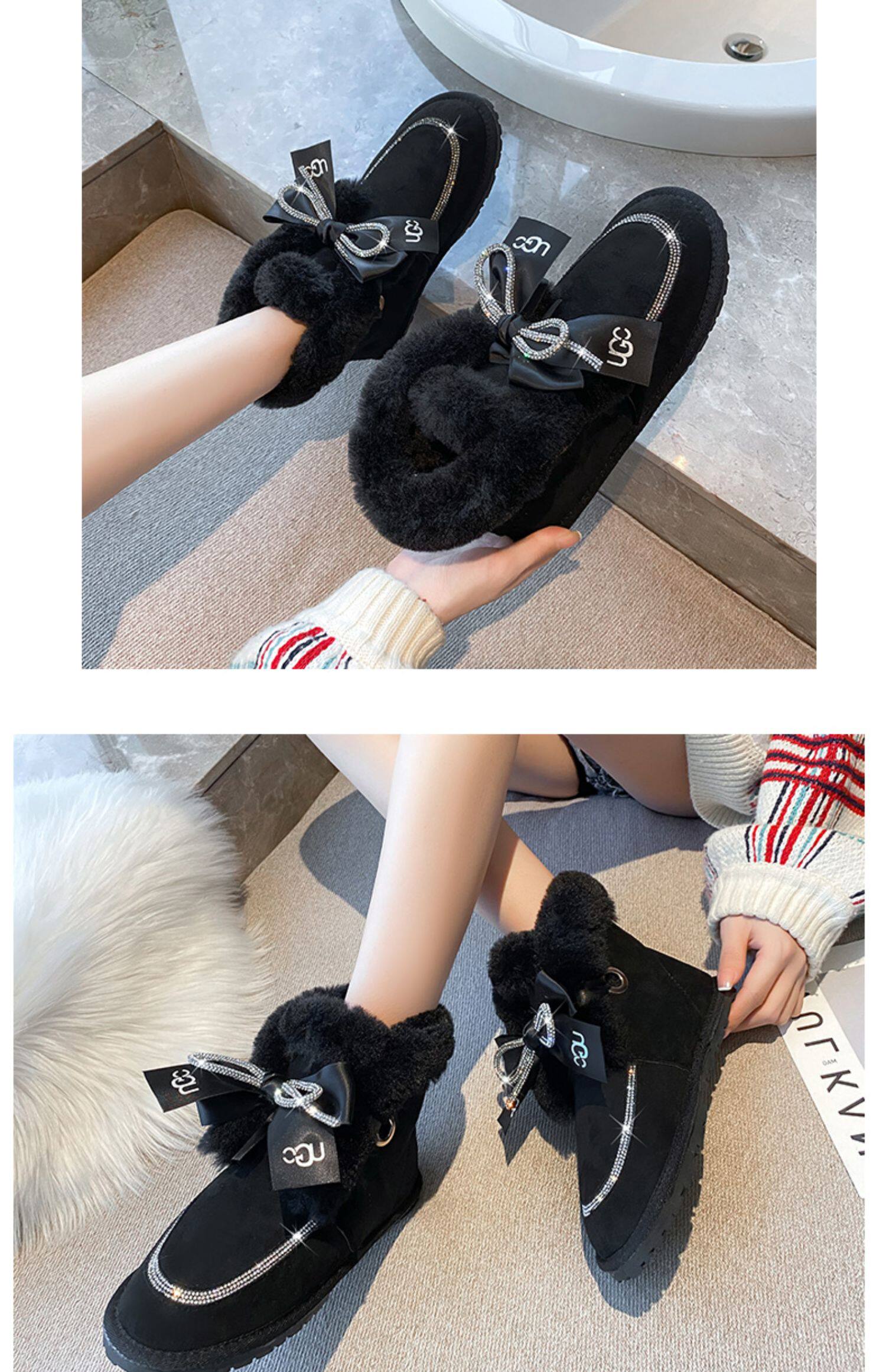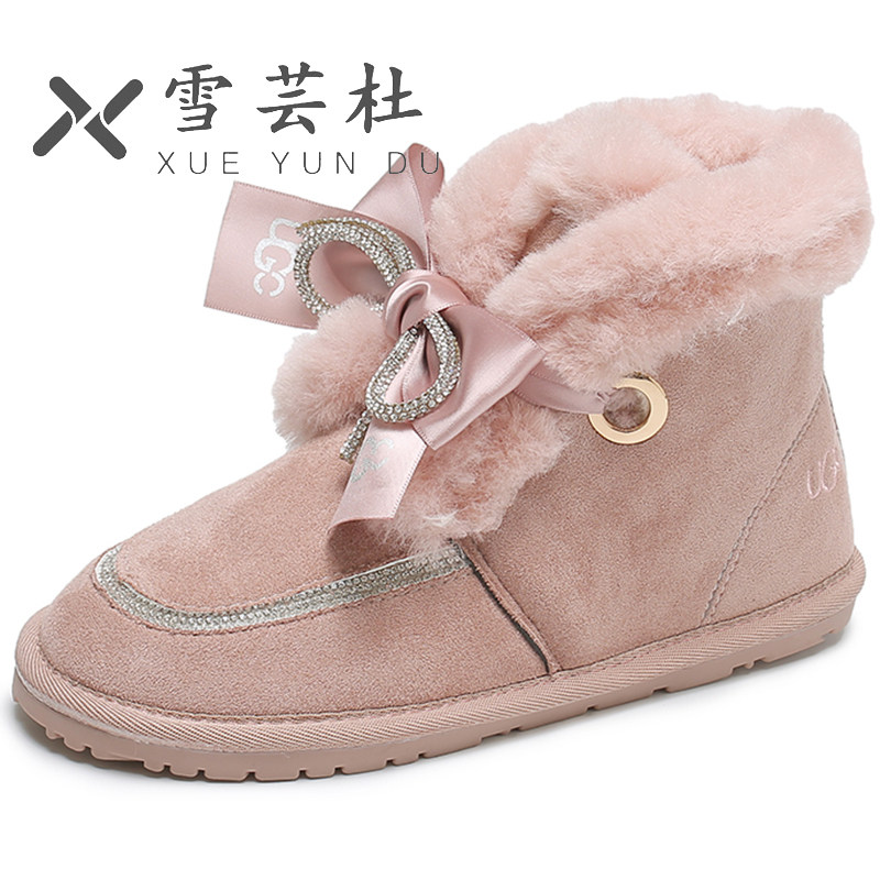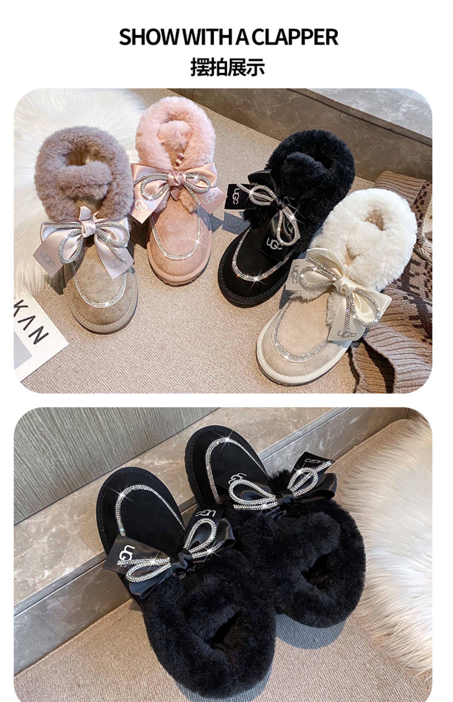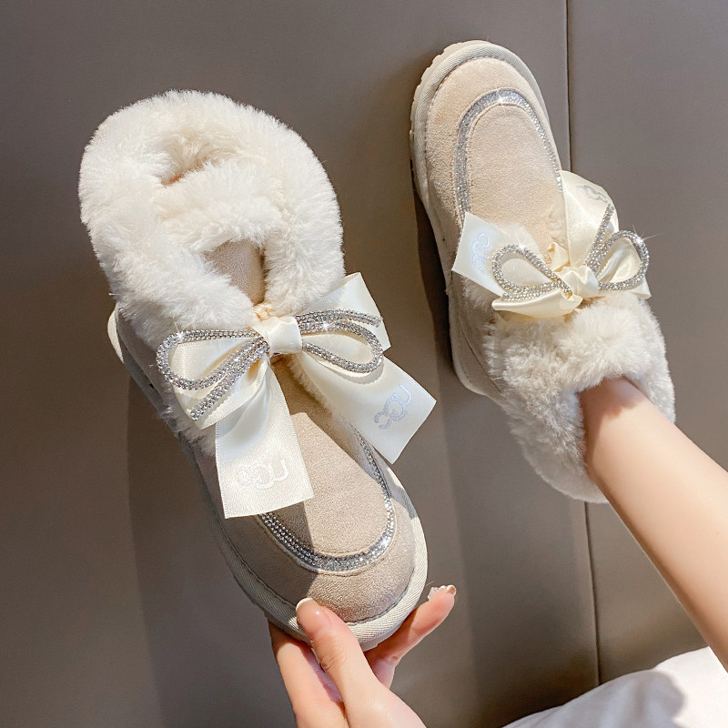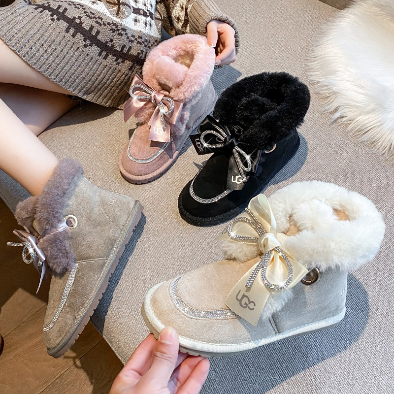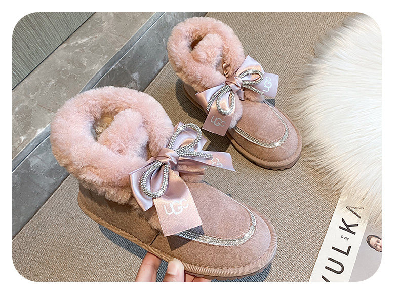 Зимние милые удерживающие тепло утепленные сапоги с бантиком, 2021 года