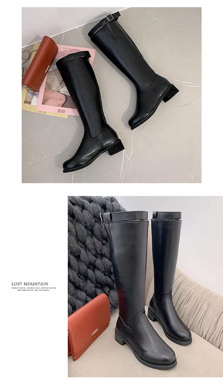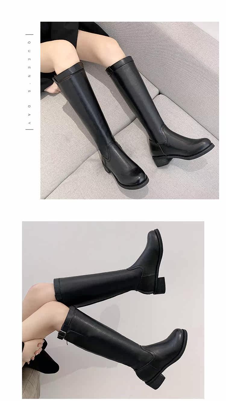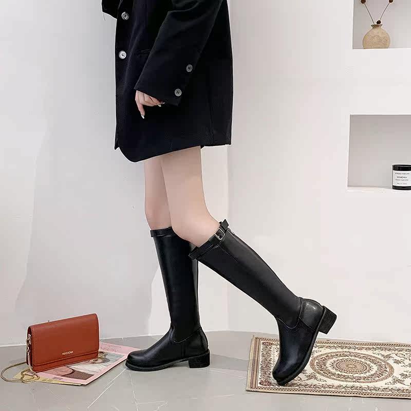 Черные высокие сапоги, демисезонный ремень в английском стиле, пряжка, ботинки, 2020, в британском стиле, популярно в интернете