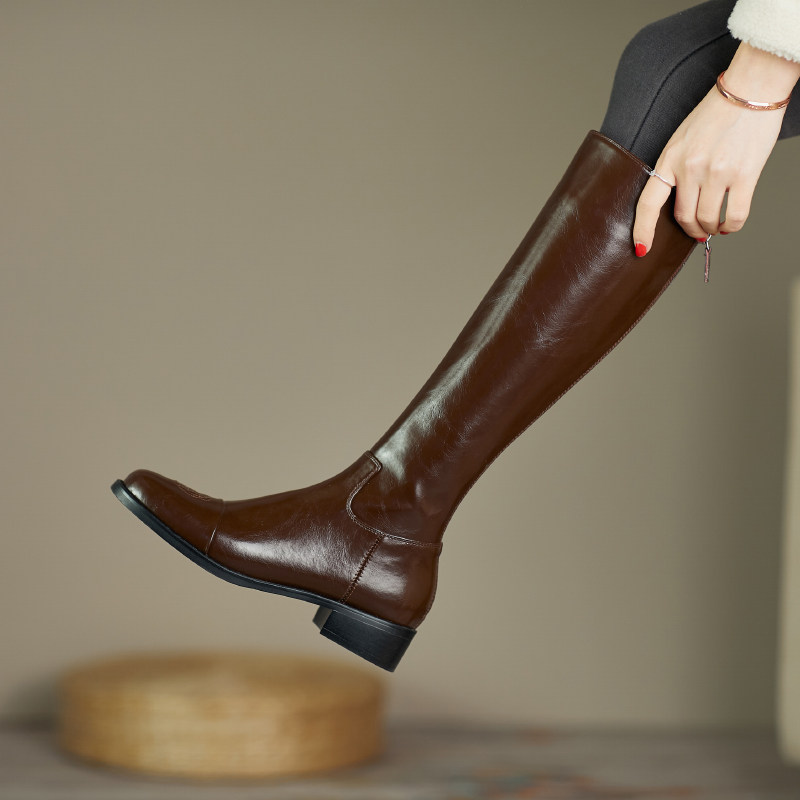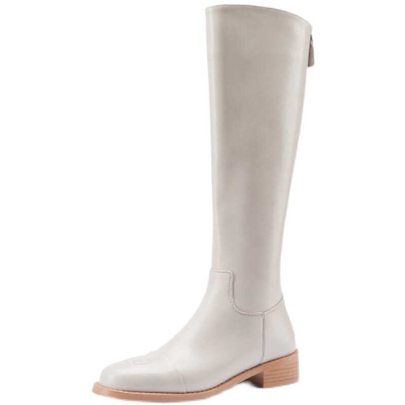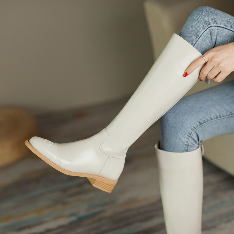 Высокие сапоги, белый горный чай, ботинки, коллекция 2022, из натуральной кожи, средней длины