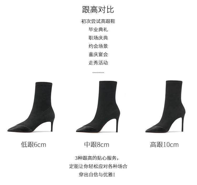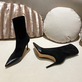 Демисезонные туфли на высоком каблуке с заостренным носом, эластичные универсальные короткие сапоги