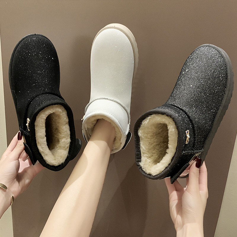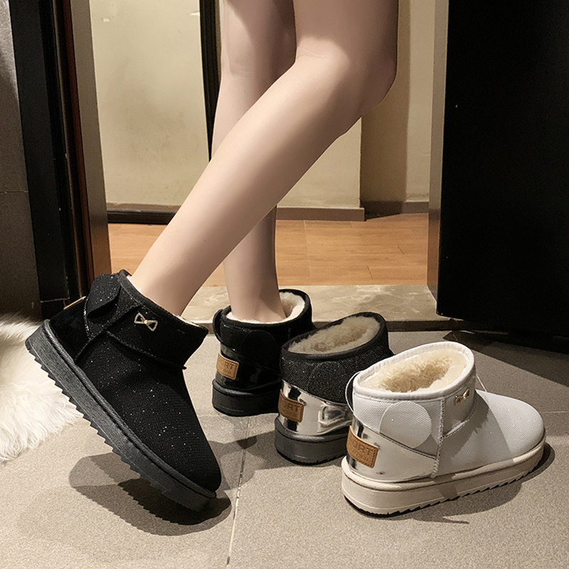 Флисовые удерживающие тепло зимние универсальные короткие сапоги на плоской подошве, ботинки, 2020, в корейском стиле