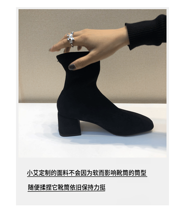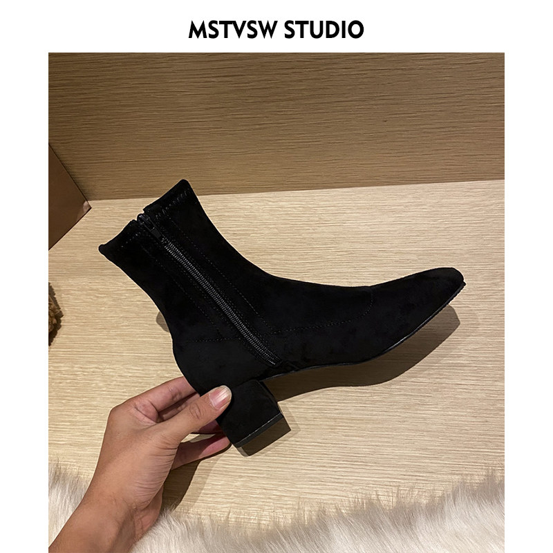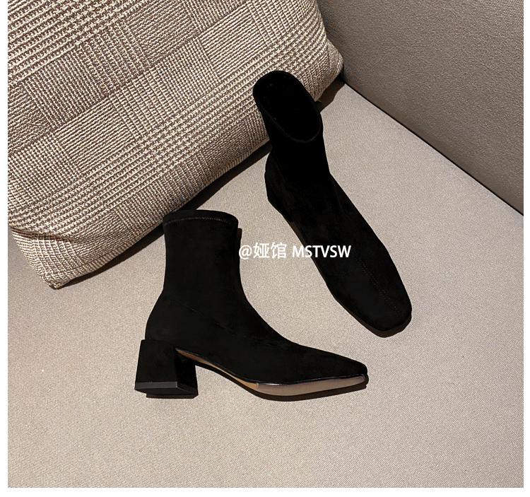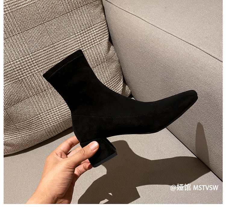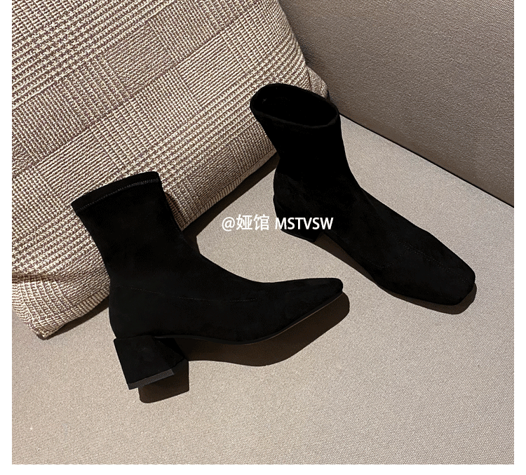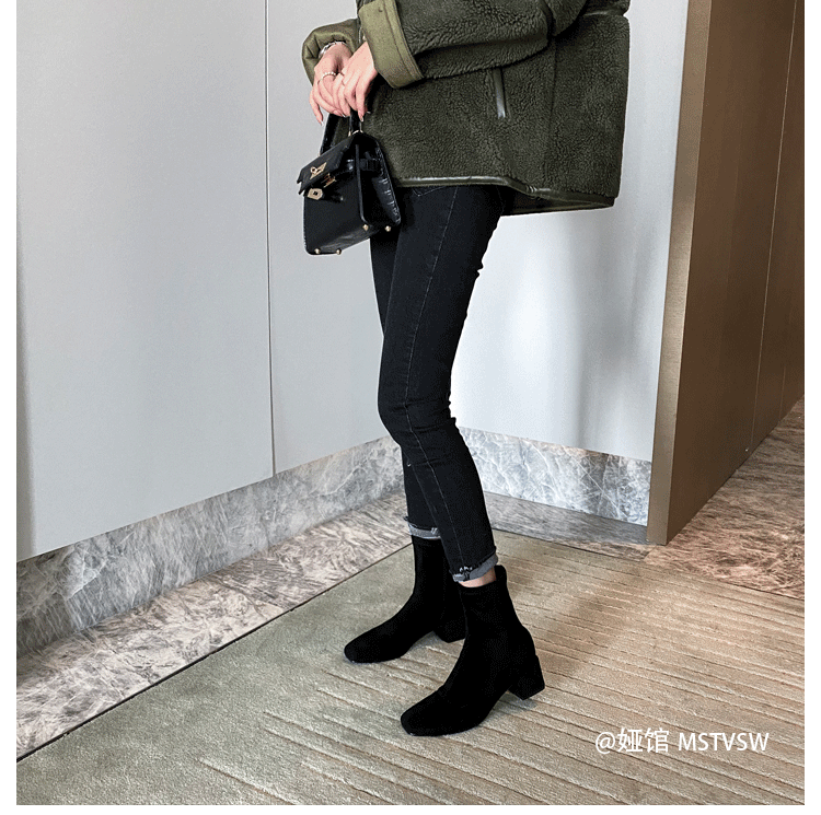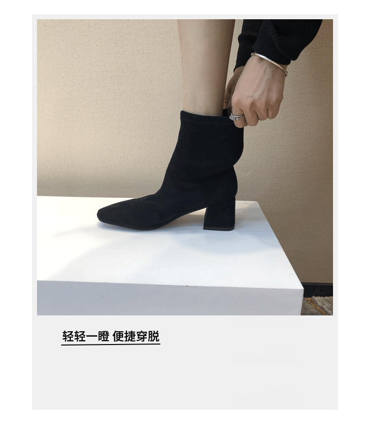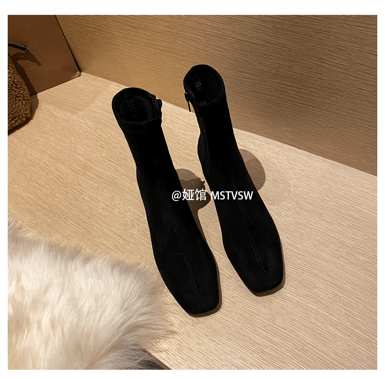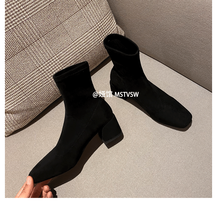 Короткие сапоги, демисезонные туфли на высоком каблуке, замшевые эластичные ботинки