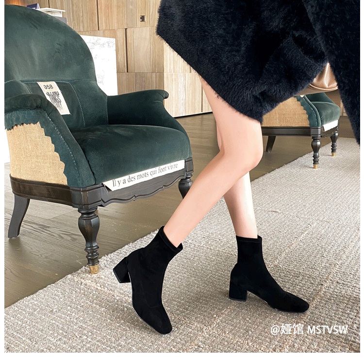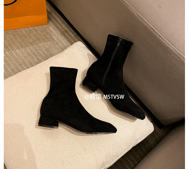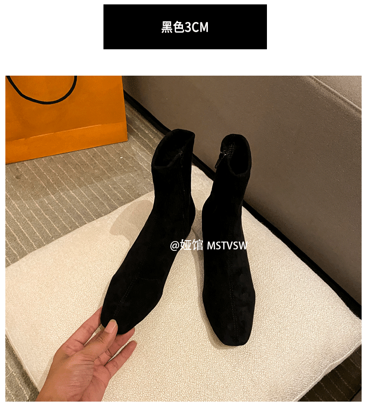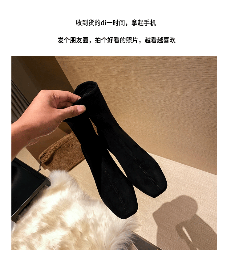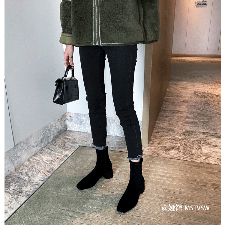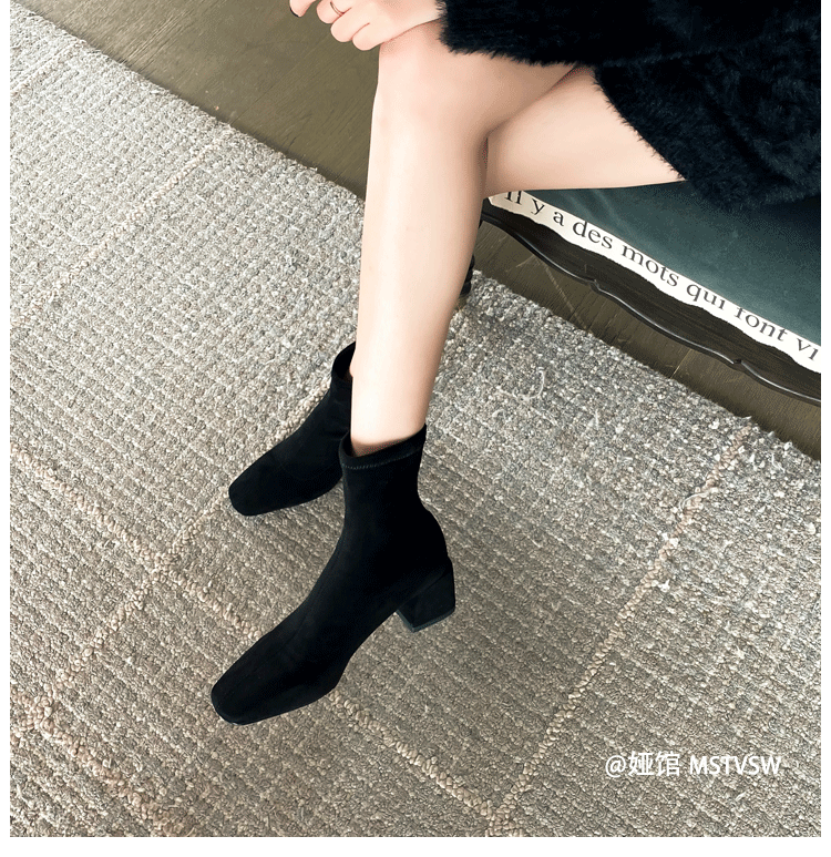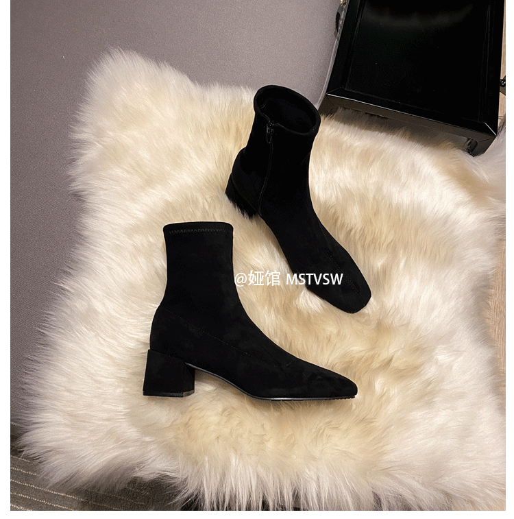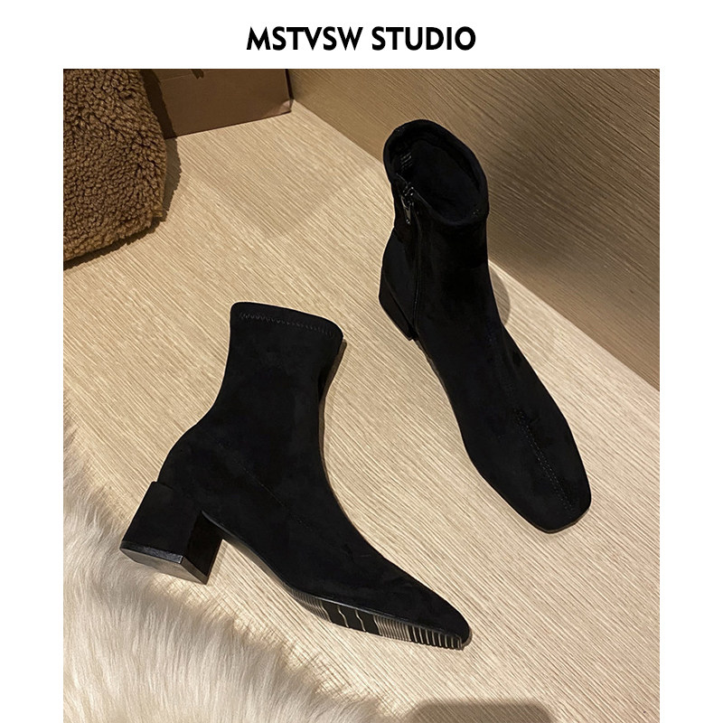 Короткие сапоги, демисезонные туфли на высоком каблуке, замшевые эластичные ботинки