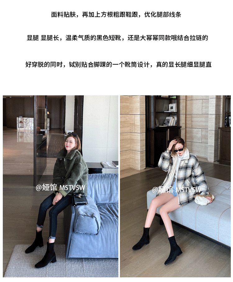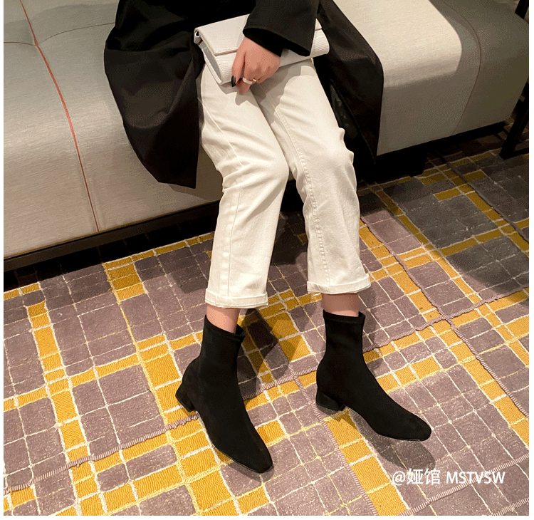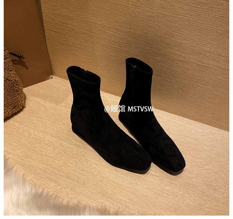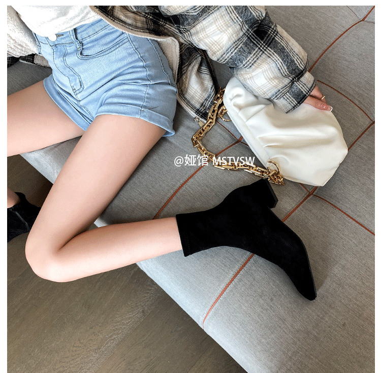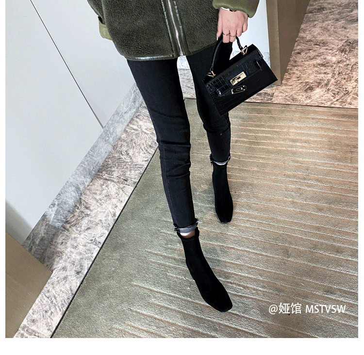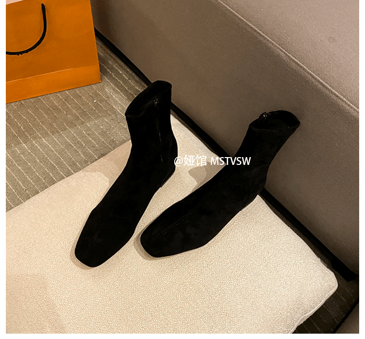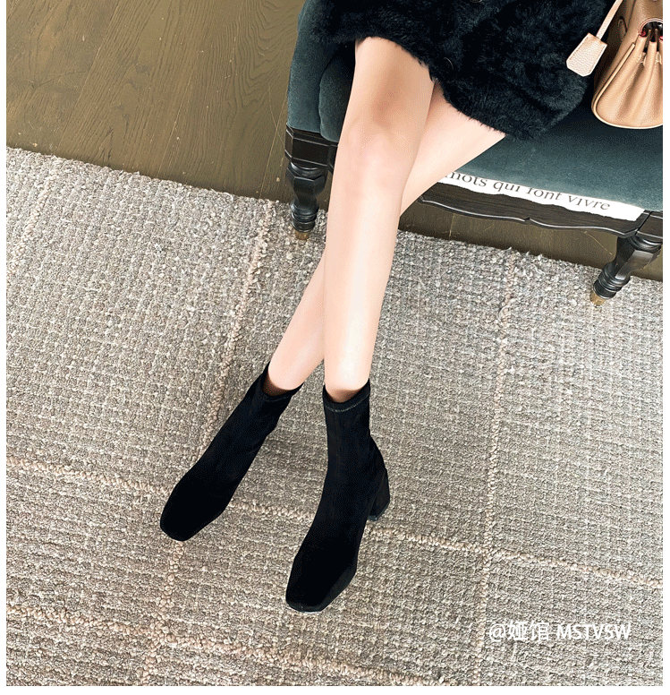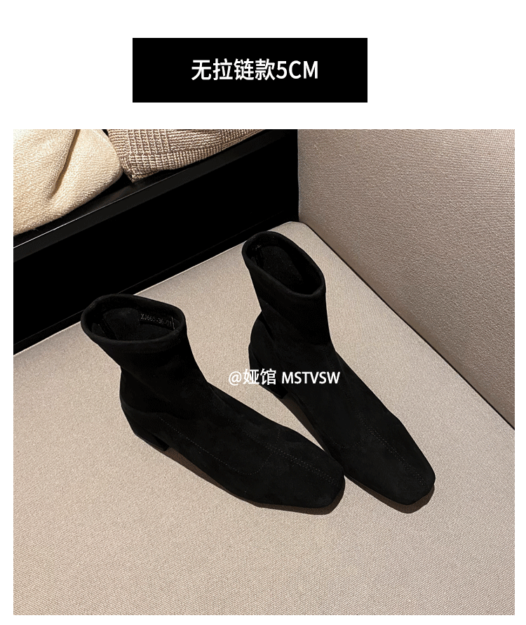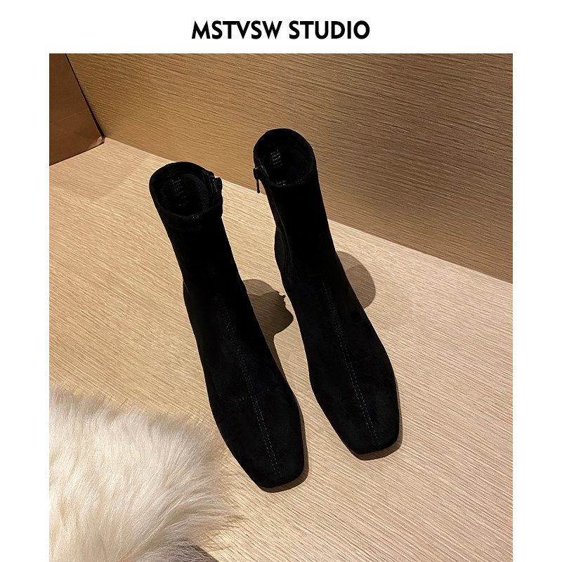 Короткие сапоги, демисезонные туфли на высоком каблуке, замшевые эластичные ботинки