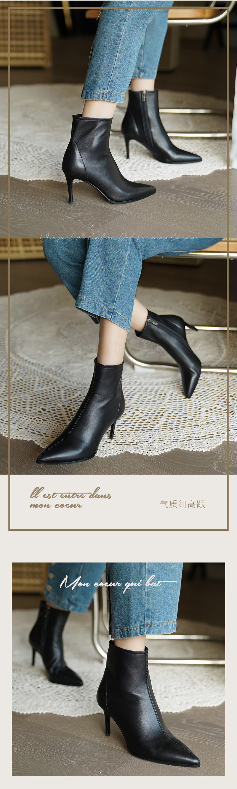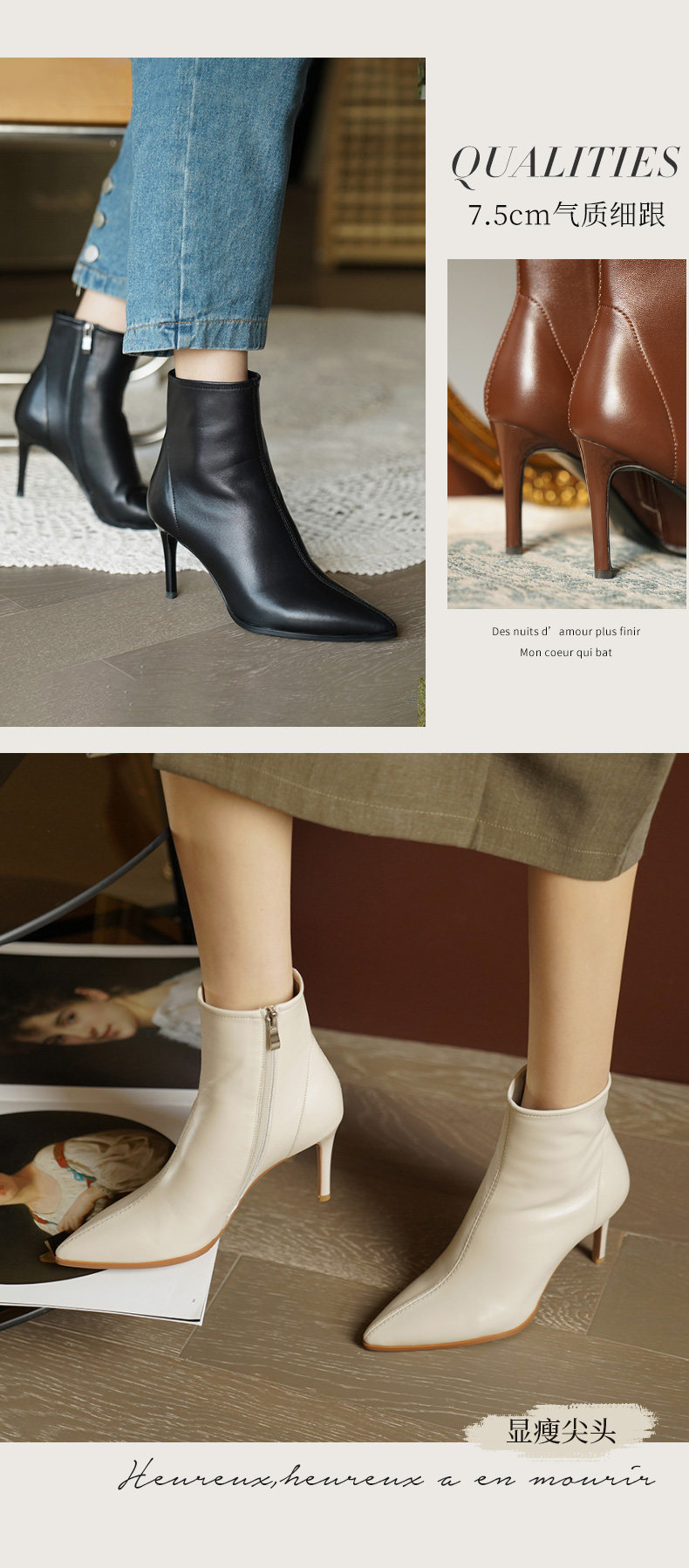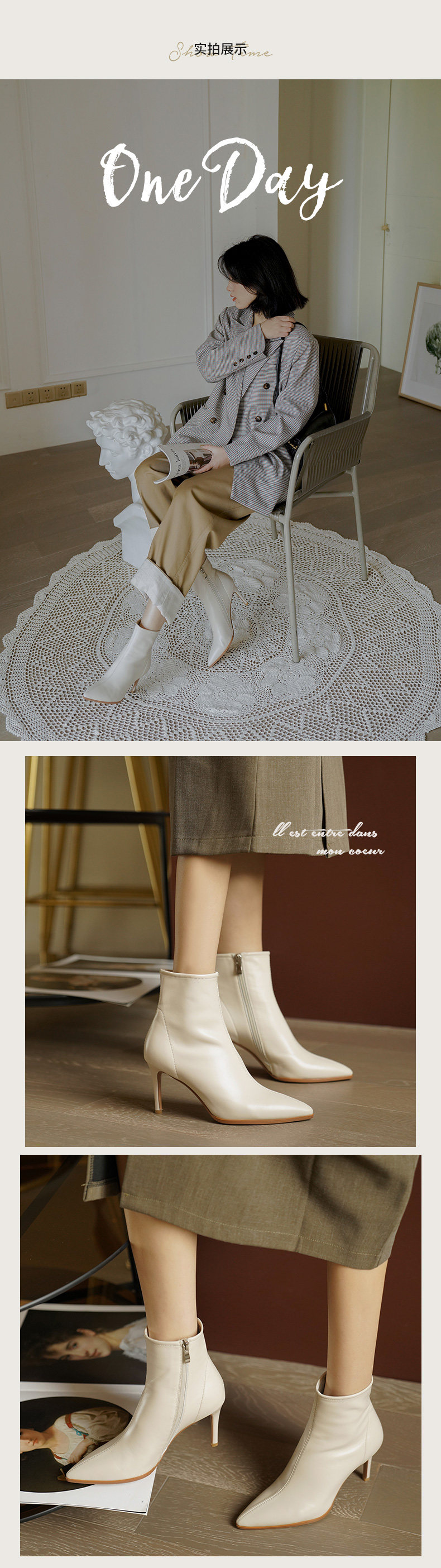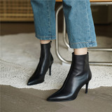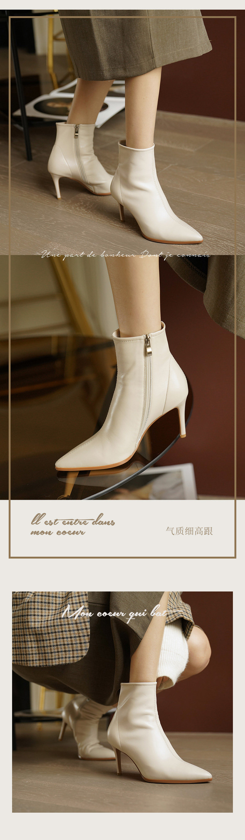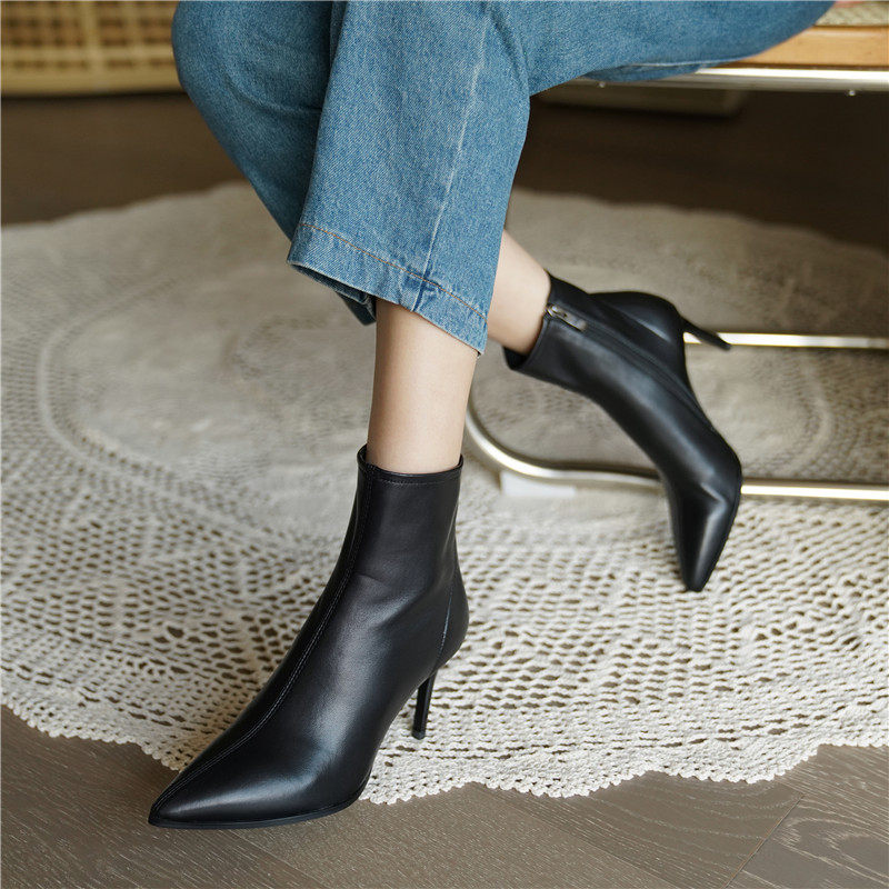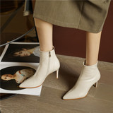 Демисезонные короткие сапоги с заостренным носом на высоком каблуке, флисовые белые ботильоны, подходит для подростков, французский стиль