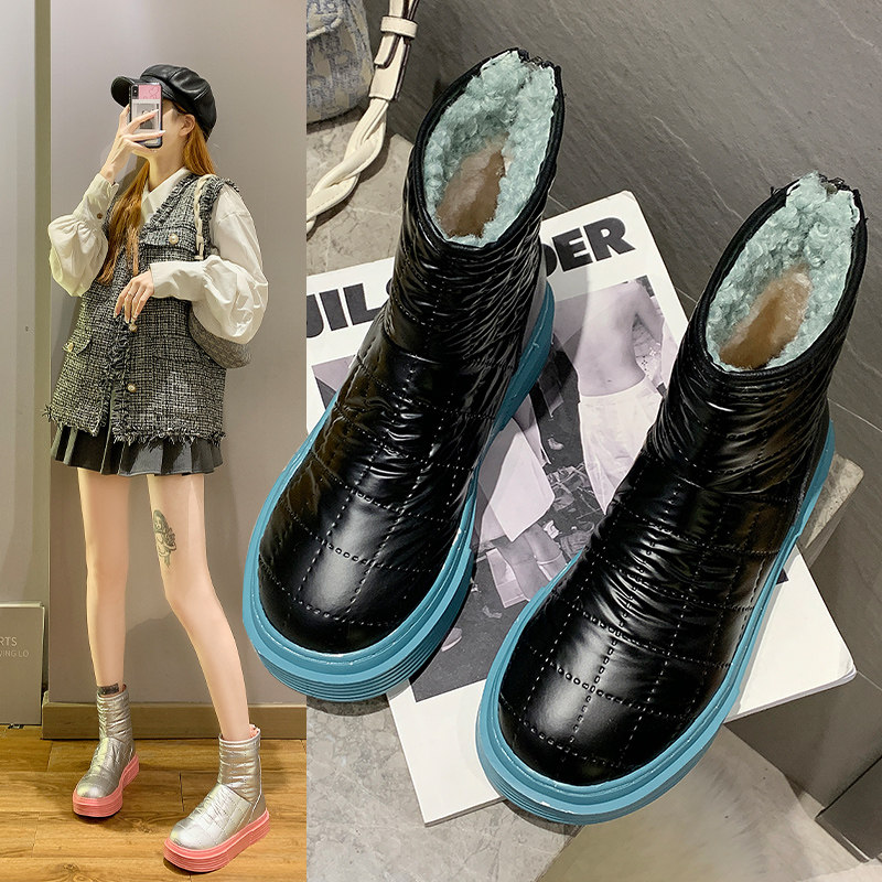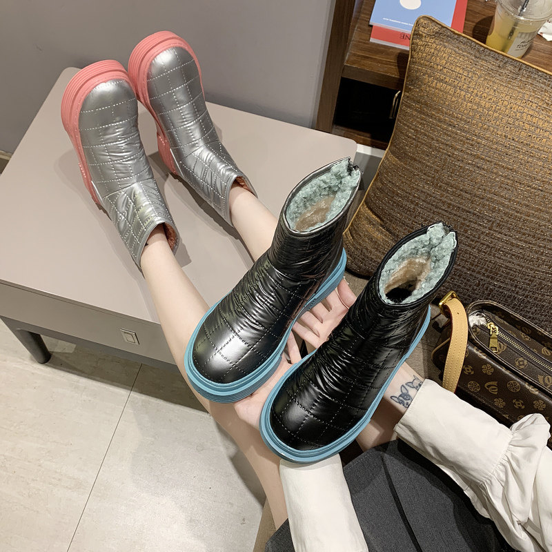 Сапоги, нескользящая флисовая обувь с пухом на платформе, 2020 года, в корейском стиле