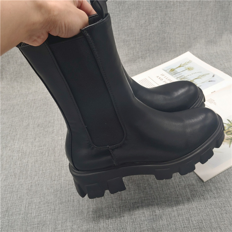 2021 Внешняя торговля Европейские и американские одноместные повседневные короткие сапоги на толстом толстом каблуке с круглым носком и боковой молнией Ботинки Мартины Женские сапоги на среднем каблуке